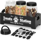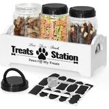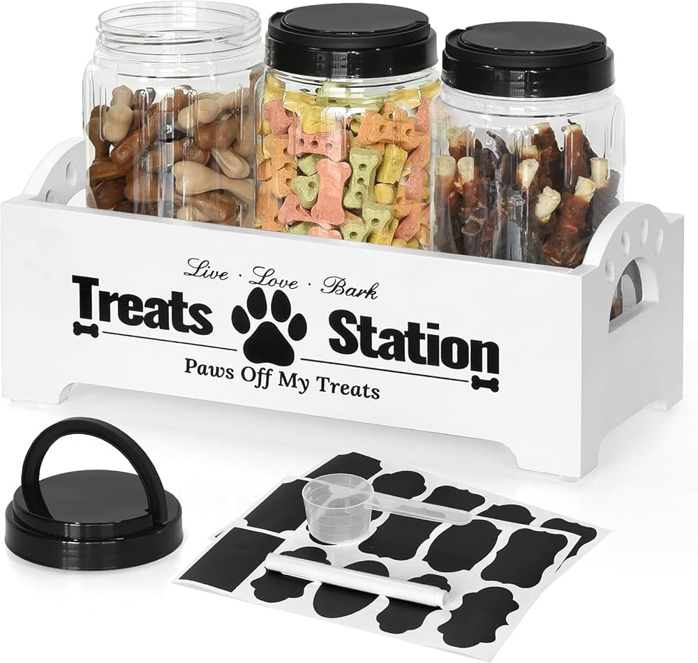 حاوية تخزين طعام الكلاب مع 3 برطمانات محكمة الغلق، حاوية طعام الكلاب للمنضدة، حاويات تخزين طعام الحيوانات الأليفة مع وعاء طعام الكلاب، حاوية طعام خشبية للكلاب مع مجارف وملصقات وقلم (أسود) in Kuwait