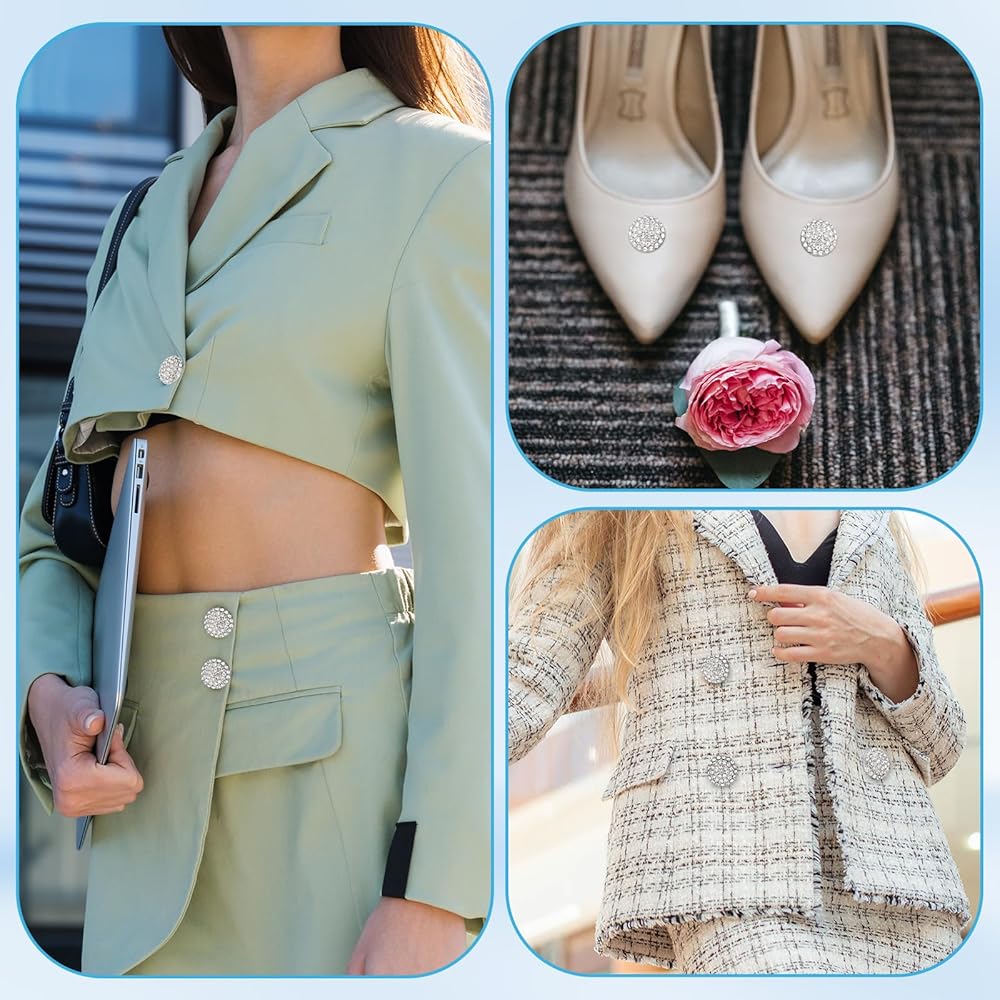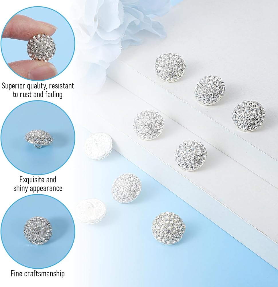 • Elegant Sparkle Accent: Designed to elevate any outfit, these fancy diamond buttons for women's clothes cover add a brilliant sparkle and touch of sophistication. Perfect for enhancing women's blouses, dresses, jackets, or DIY fashion projects with a flair.