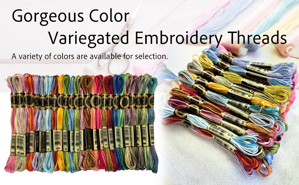 - تتميز بلون غير متساوٍ يتغير خلال الخيط، مما يمنح مشروع التطريز الخاص بك تصميمًا فريدًا