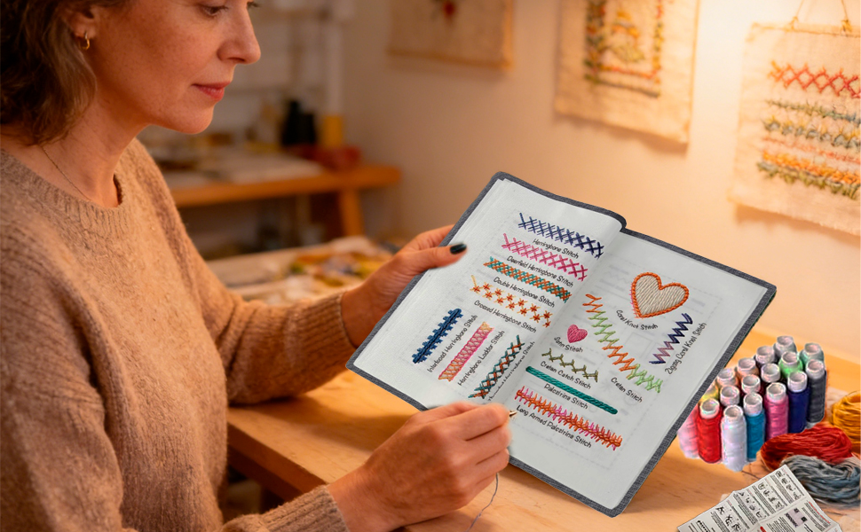 يتضمن دليل البرنامج التعليمي: يحتوي كتاب أدوات التطريز على تعليمات مفصلة ورسوم بيانية موضحة وأقسام تدريب، مما يمكّن البالغين والمراهقين والهواة من التعلم بثقة دون خبرة سابقة في الخياطة. ابدأ التطريز مع الأصدقاء اليوم!