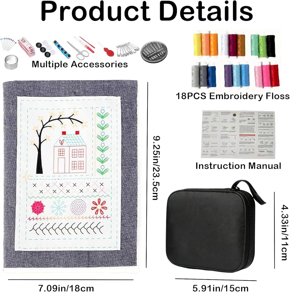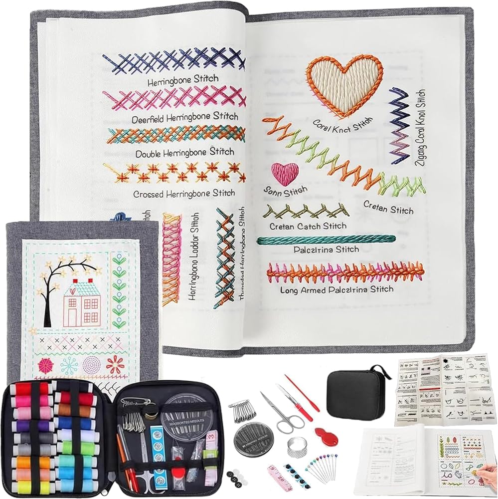 مجموعة أدوات التطريز الكاملة: يشتمل كتاب غرزة Embroom على كتاب تطريز، ودليل تعليمات، وخيط تطريز ممتاز، ونسيج مطبوع مسبقًا، وإبر تطريز، وخيط، ومقص، وقماش، ودبابيس وضع العلامات، وحقيبة تخزين، و15 أداة تطريز أخرى - ابدأ الخياطة فور إخراجها من الصندوق.