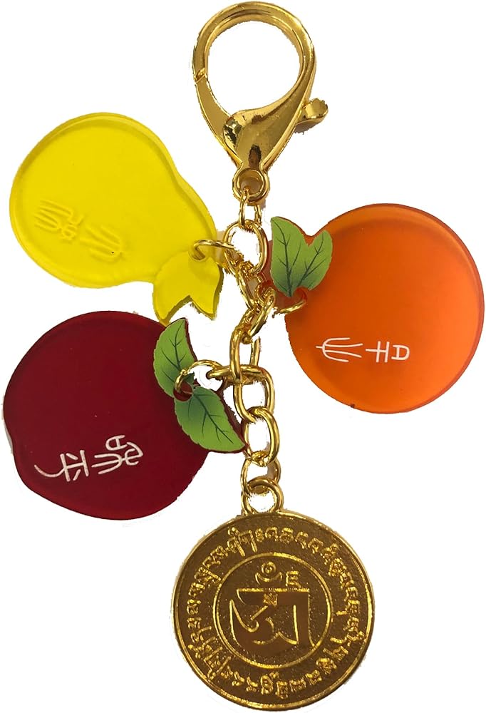 This beautifully crafted portable amulet features a trio of auspicious fruits — the Apple, Mandarin Orange, and Golden Pear — each engraved with a powerful blessing to attract peace, prosperity, and abundance wherever you go. The Apple, inscribed with “Her Ping” (Peace), promotes harmony and smooth relationships. The Mandarin Orange with “Tai Kat” (Great Luck), symbolises wealth and good fortune. The Golden Pear with “Tai Ley” (Great Profits) brings prosperity and long-term success Together they embody the cherished Chinese greeting “Tai Kat Tai Ley” , meaning Great Luck and Great Profits - a phrase rich in both phonetic and visual symbolism. Enhanced with the Anti-Conflict Amulet, this portable charm offers protection against tension, quarrels and emotional unrest. Clip onto your handbag, backpack, or use as a keychain for peace, prosperity and protection wherever life takes you.