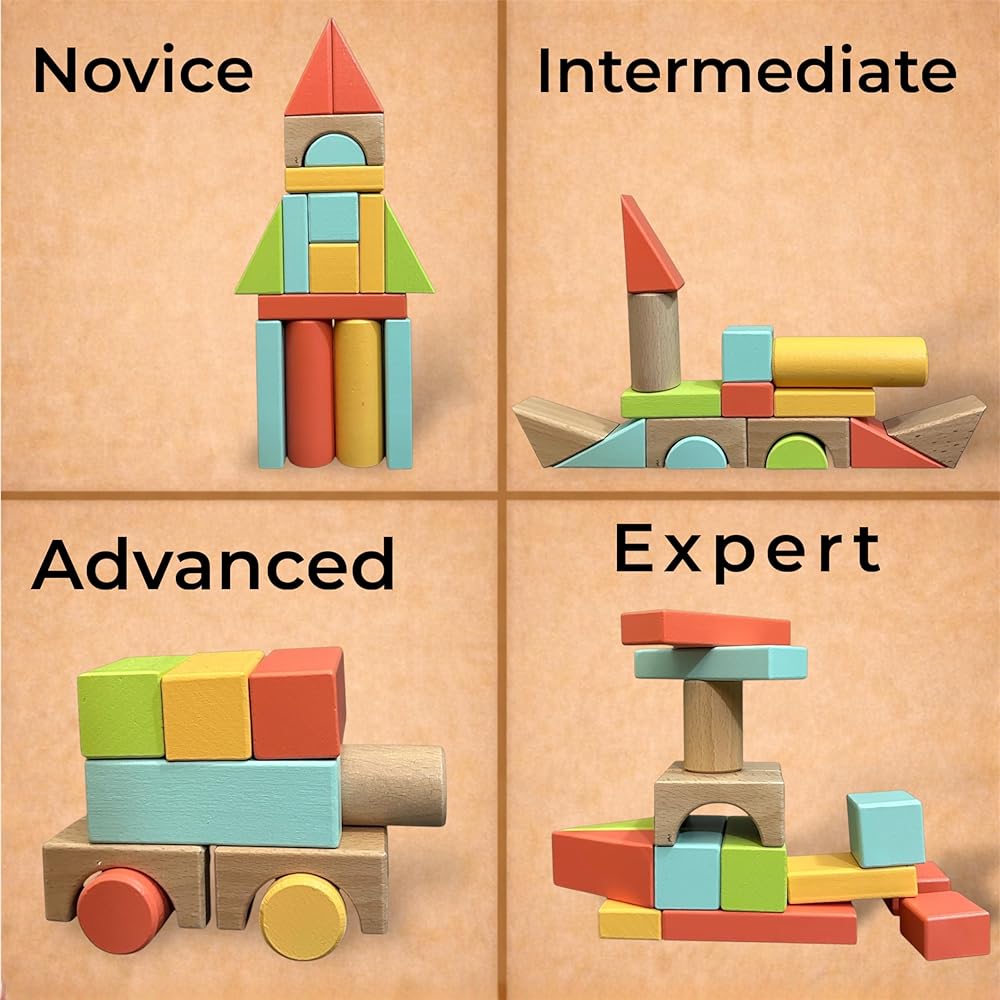 لعب متعدد الاستخدامات: يمكن استخدام المكعبات لبناء القلاع والمنازل والأبراج والهياكل الإبداعية التي لا نهاية لها، مما يشجع اللعب الخيالي.