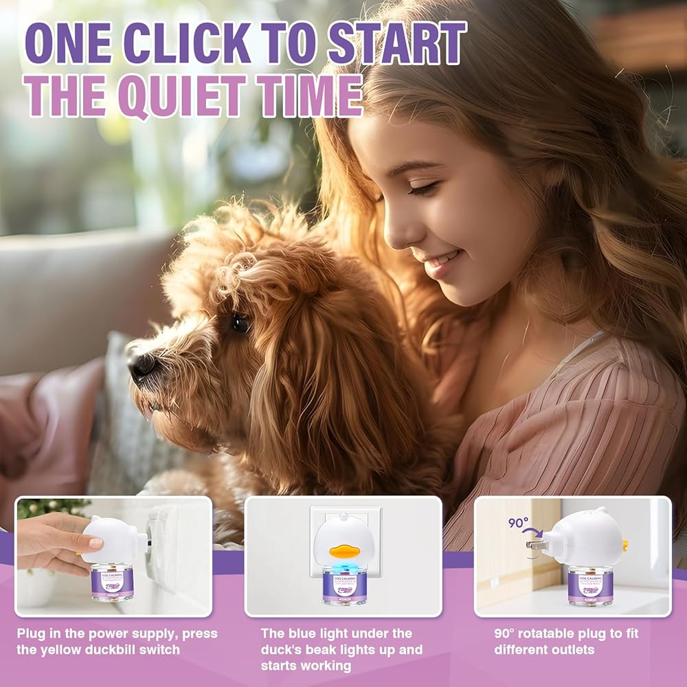 موزع فرمونات مهدئ للكلاب 3 في 1 مجموعة متقدمة لتلطيف ناشر الفرمون لتهدئة الحيوانات الأليفة (قابس واحد + عبوة 2 × 48 مل) لتخفيف القلق وتخفيف التوتر وتقليل العدوانية والإجهاد (لا طعم له)