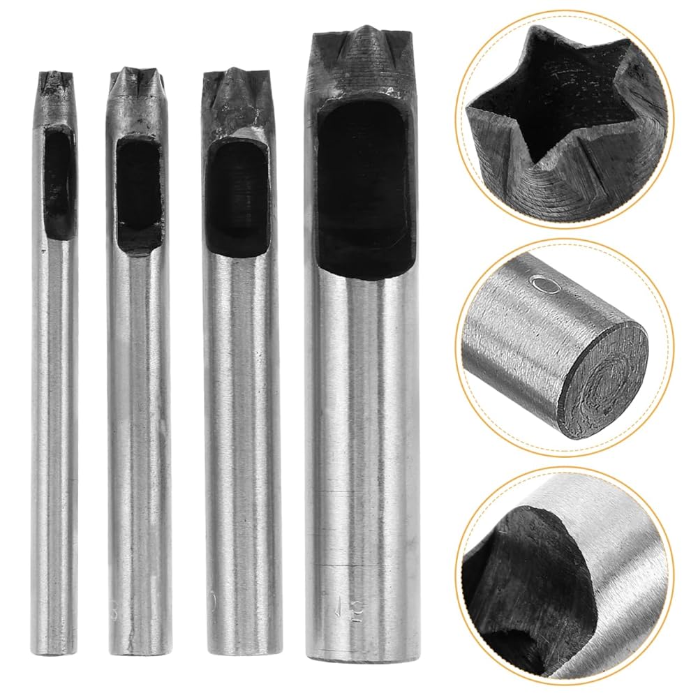 The diyeah hole punch tool set is designed for precise leather hole punching, ideal for belts, bags, and various leathercraft projects.Featuring a unique five-point star shape, this puncher adds decorative and custom patterns, enhancing your diy crafts with a personal touch.Constructed from steel, the tool offers reliable performance suitable for hobbyists and leathercraft enthusiasts.This set includes multiple punch sizes to accommodate different project needs, ensuring versatility in your work.To use, place your leather item on a sturdy surface, position the punch where desired, and strike the top with a mallet or hammer to create clean, consistent holes.Perfect for home workshops, crafting sessions, and present making, this tool supports creativity and precision in leather punching tasks.