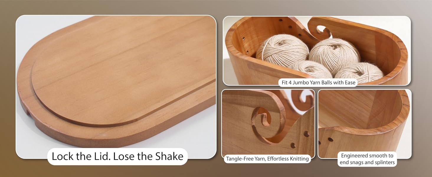 【غطاء مضاد للانزلاق للاستخدام الآمن】 يتميز وعاء الغزل الخشبي هذا بغطاء مزود بأخاديد مضادة للانزلاق مصممة بدقة والتي تحافظ على الغطاء ثابتًا في مكانه أثناء الحياكة أو الكروشيه. لا مزيد من تغيير الغطاء أو الانزلاقات العرضية، فقط صناعة متواصلة. يضمن وعاء الغزل المزود بغطاء بقاء خيوطك نظيفة ومنظمة أثناء التركيز على مشروعك.