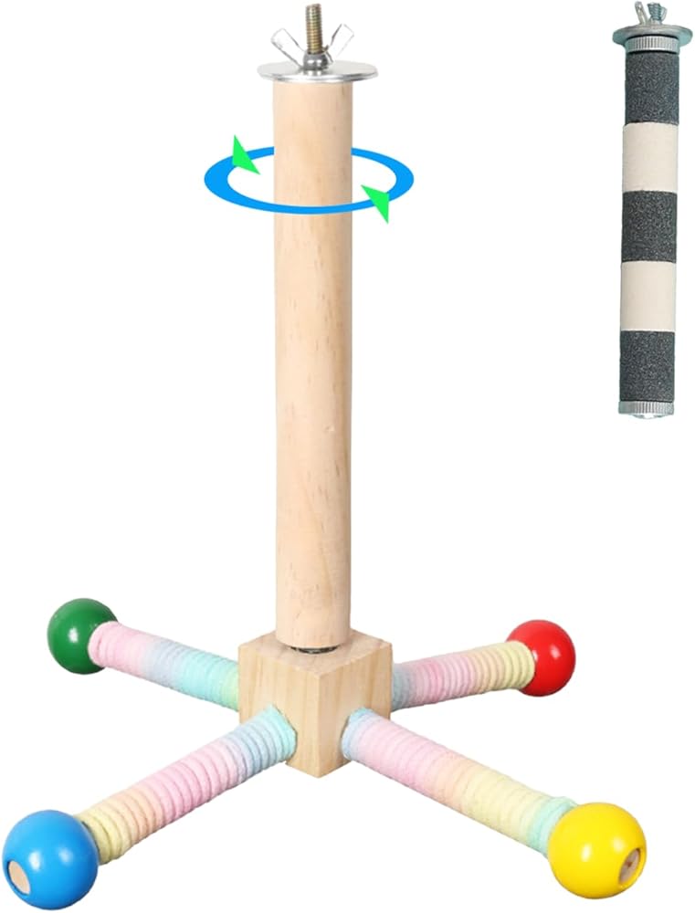 Multi-Functional Enrichment: More than just a spinning toy – the natural solid wood texture provides excellent beak grinding benefits, helping keep your parrot's beak healthy and trimmed. The wood's natural scent and texture stimulate your parrot's senses, while the bright color combination (blue, green, yellow) appeals to their visual sensitivity, doubling the curiosity and keeping them engaged for hours.