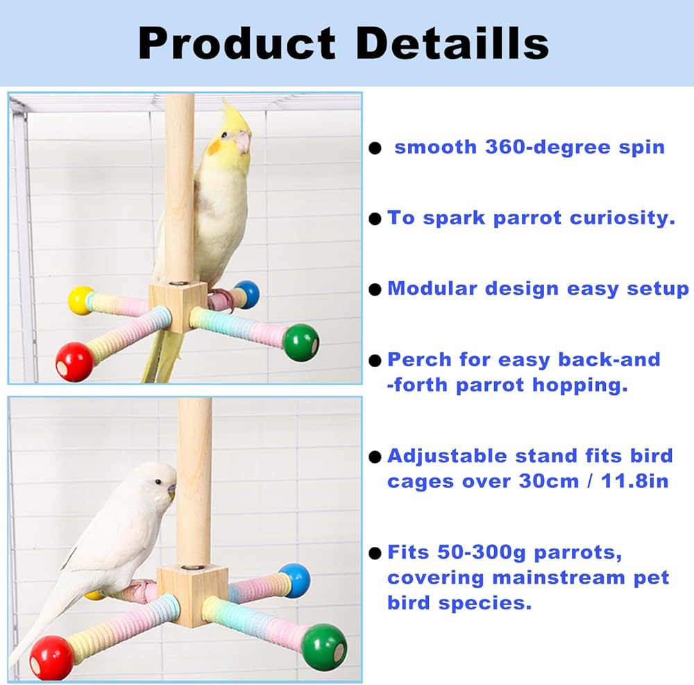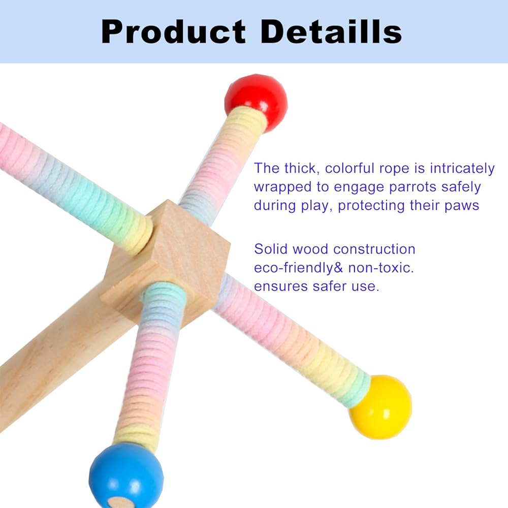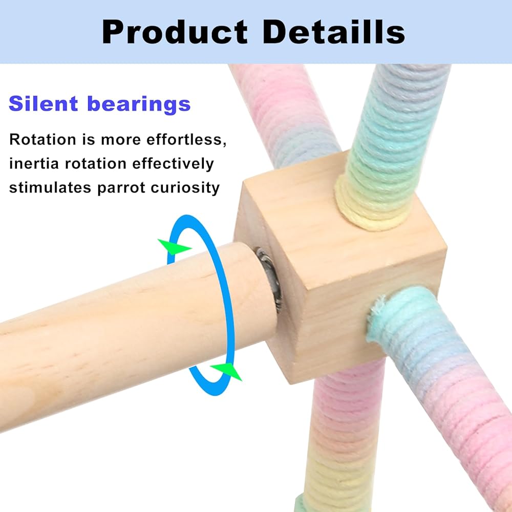 Natural Solid Wood Material: Crafted from high-quality natural solid wood that meets pet safety standards, this parrot windmill toy is non-toxic, odorless, and has a natural texture that parrots love to chew. The sturdy wood construction is bite-resistant for long-term use, and all edges are sanded smooth to prevent scratches on your parrot's beak and claws, ensuring worry-free playtime.