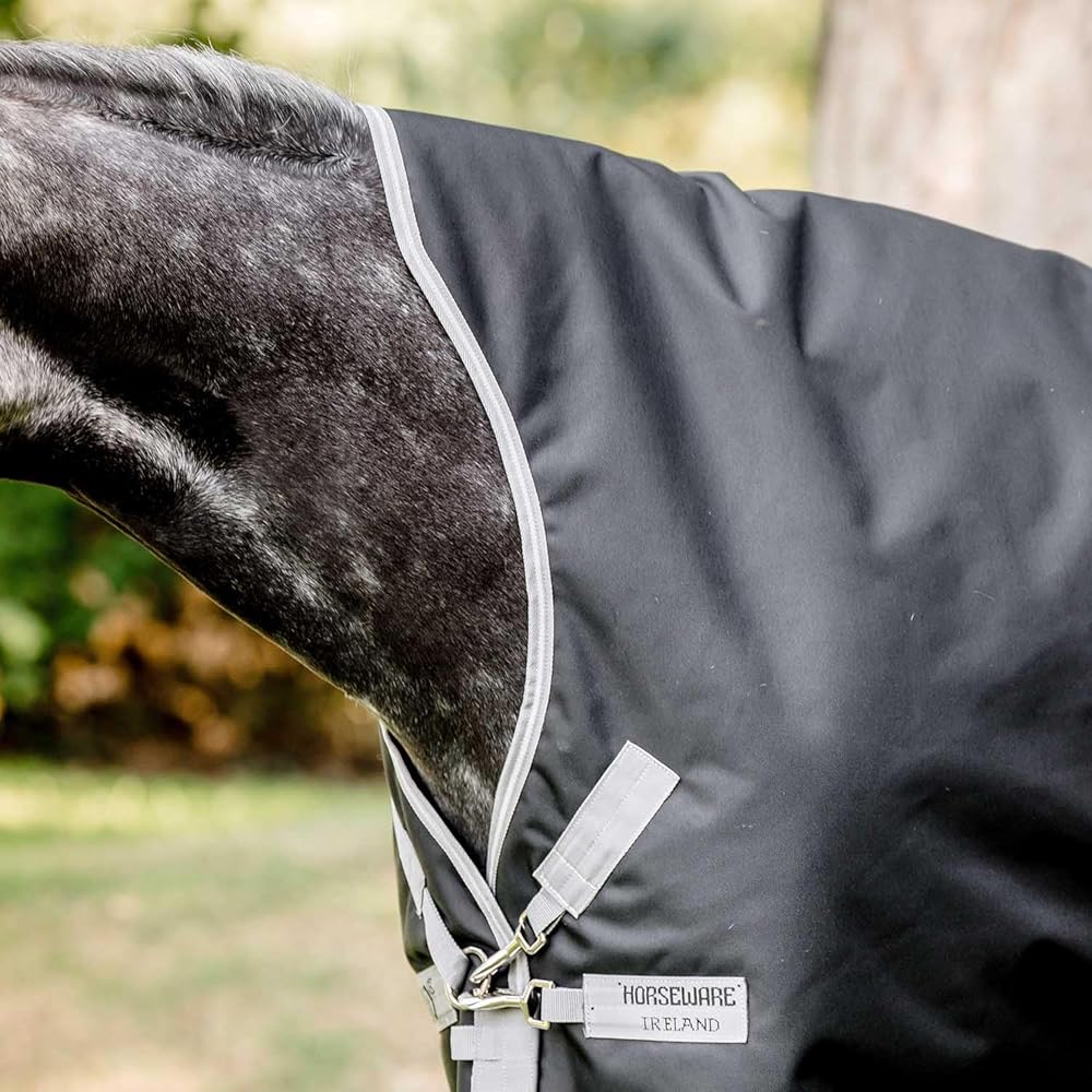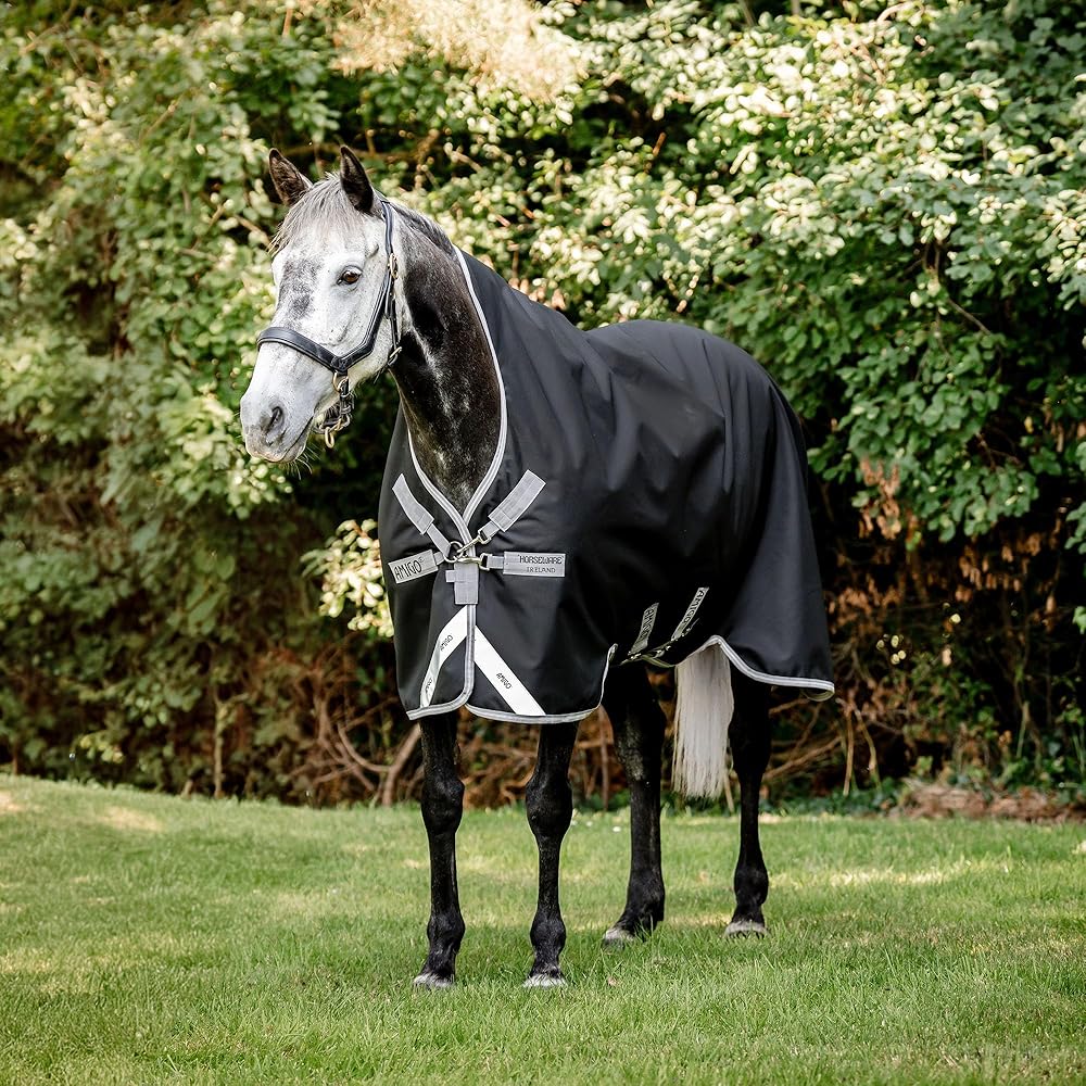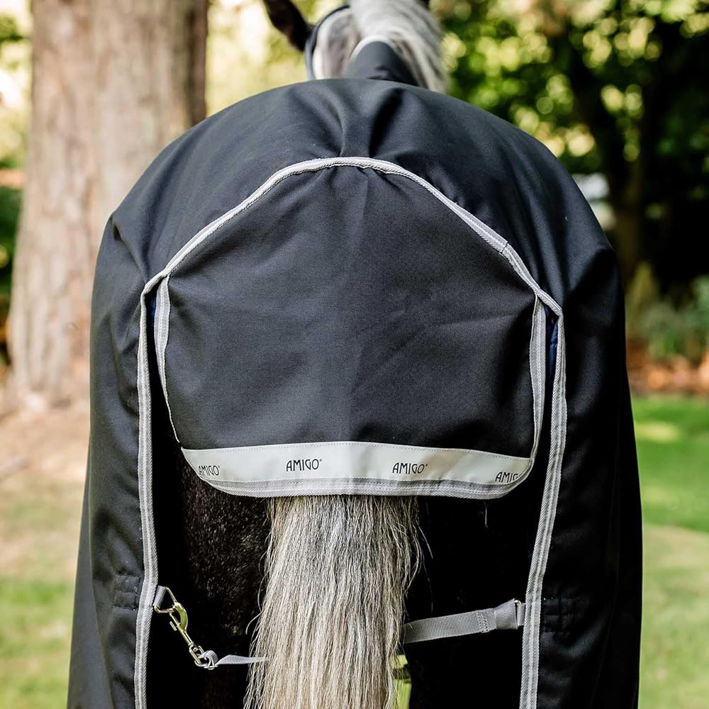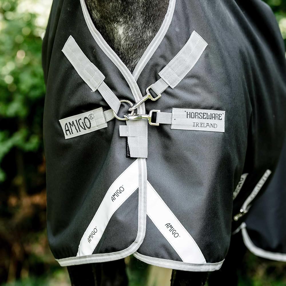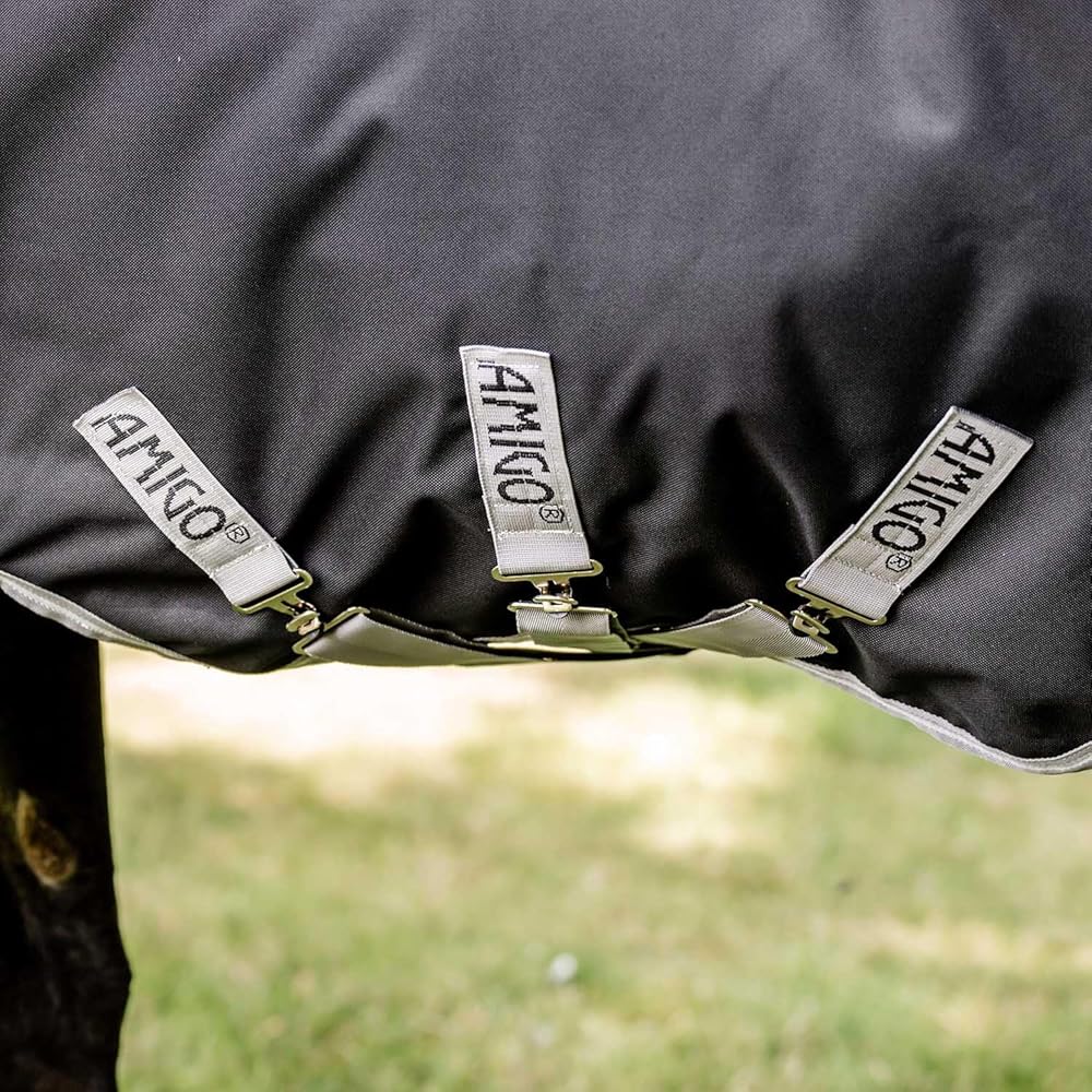 Amigo Bravo 12 Wug Medium Turnout Blanket Strong, waterproof and breathable, this Amigo Bravo 12 turnout rug has 250 grams of fiberfill insulation to keep your horse warm and comfortable. Shine enhancing polyester lining, also prevents rubbing. Dual leg arches provide freedom of movement and maximize belly coverage. Three cross surcingles and tail strap provide a secure fit on this blanket. Wug has a higher cut neck design perfect for a narrow horse with high withers. Features: Waterproof and Breathable V-Front closure with SureFit Neck Shine enhancing polyester lining Reflective safety strips Dual leg arches Three crossed surcingles Tail strap Item Specifications: Color: Excalibur/Silver/Plum Material: 1200D Polyester Fill: 250g Weight: Medium weight Blanket