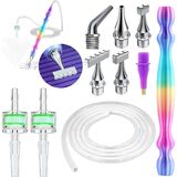Vacuum Diamond Painting Pen Replacement Kit: This electric diamond painting pen replacement kit includes 1pc resin diamond art stylus, 6pcs steel screw-on pen tips (1 x plastic drill, 1× single, 1× 2-drill, 1× 4-drill, 1× 6-drill, 1× angled elbow), 1 silicone hose (1m), and 2 dust filter—essential diamond painting accessories for DIY diamond craft