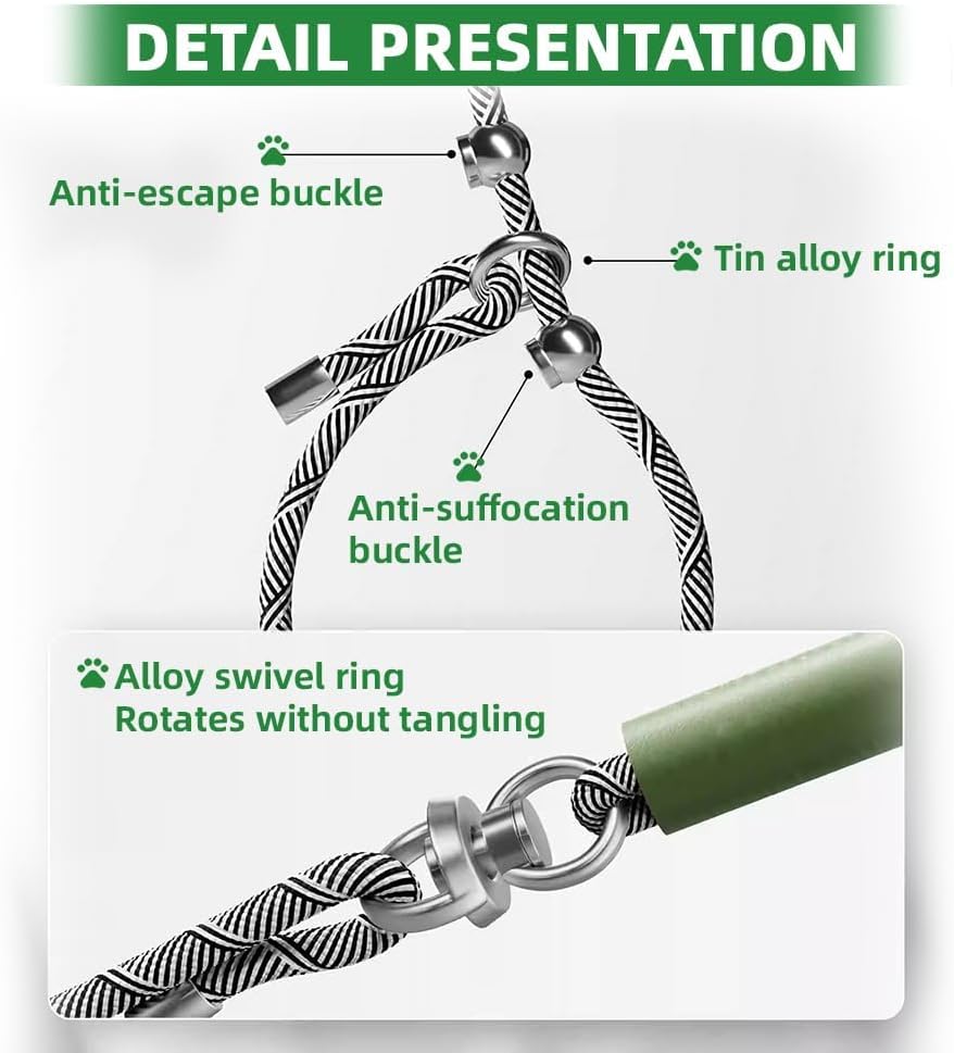 【2-in-1 Design】:No need for a separate collar. This slip lead combines both for ultimate convenience, making it quick and easy to put on and take off