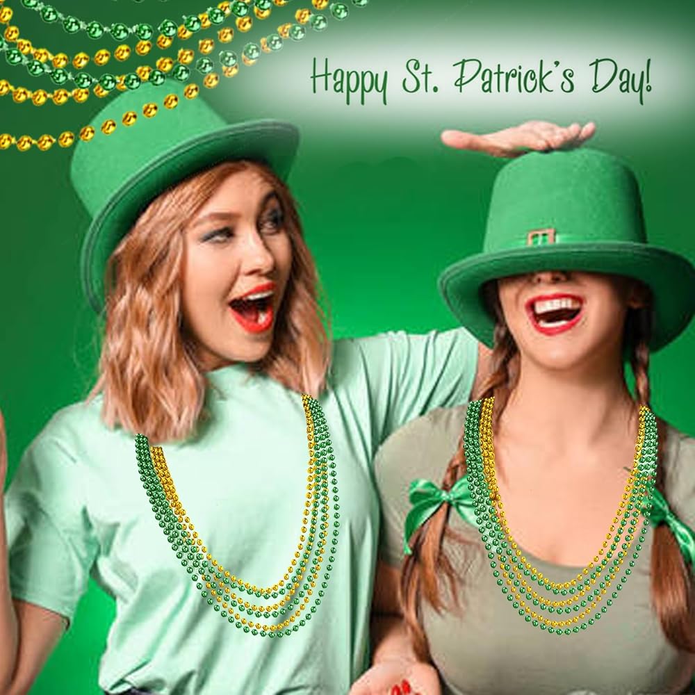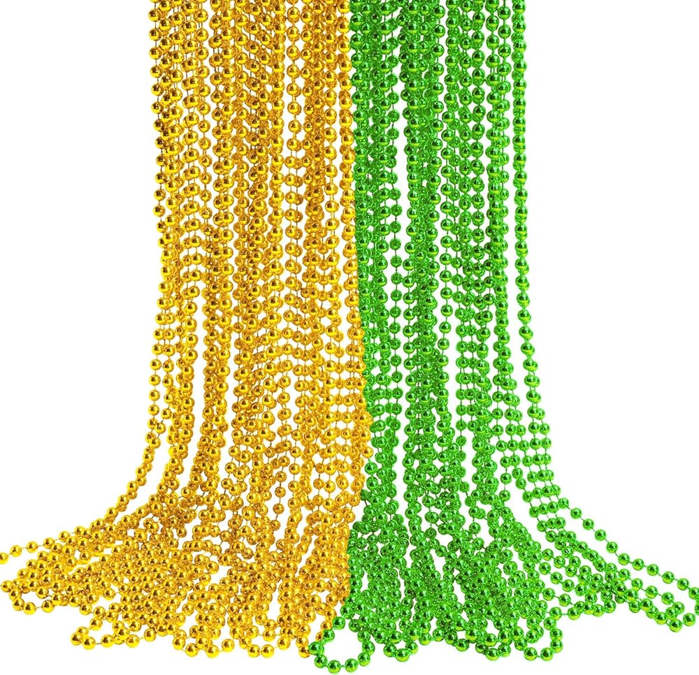 • Mardi Gras Beads: The green and gold Mardi Gras beads, properly suitable for St. Patrick's Day, Mardi Gras, Christmas, New Year's Even Day, dress up party and more. Green party beads can meet all your needs