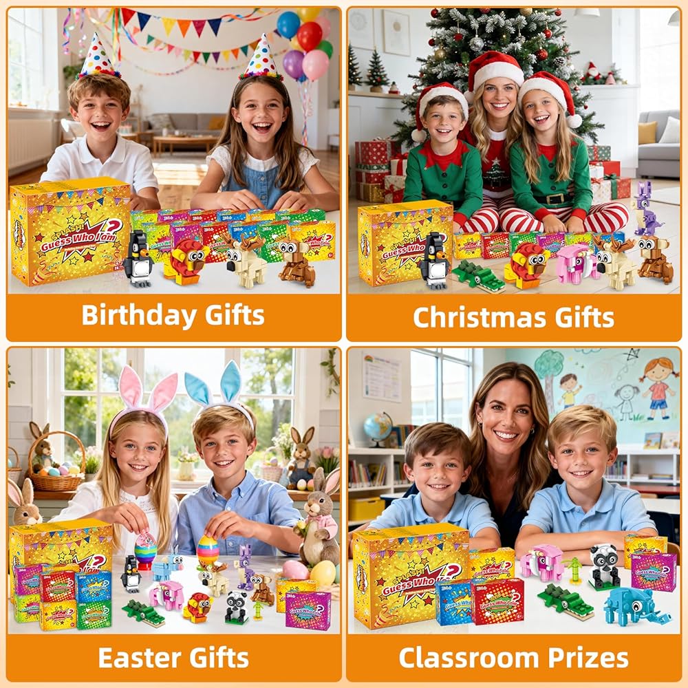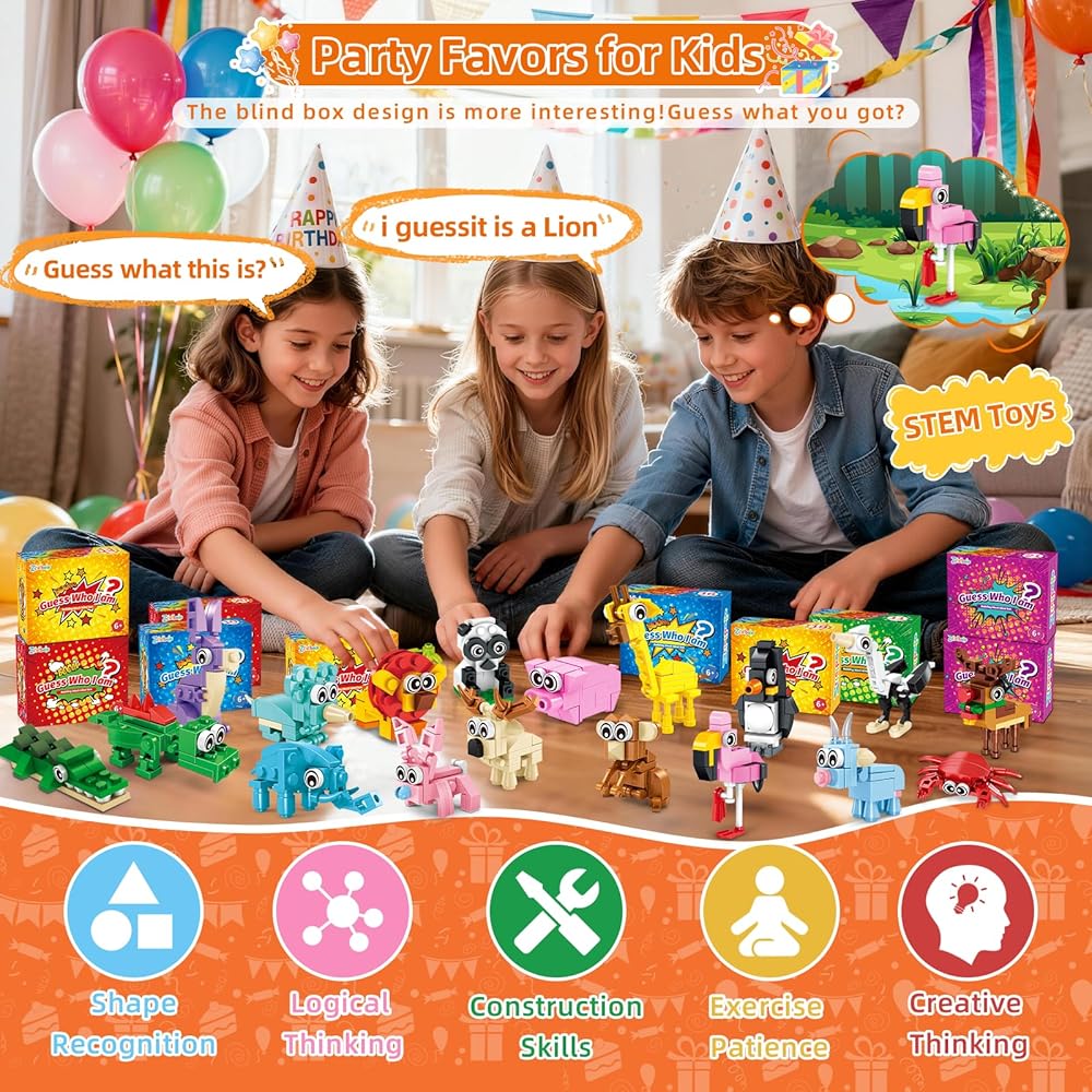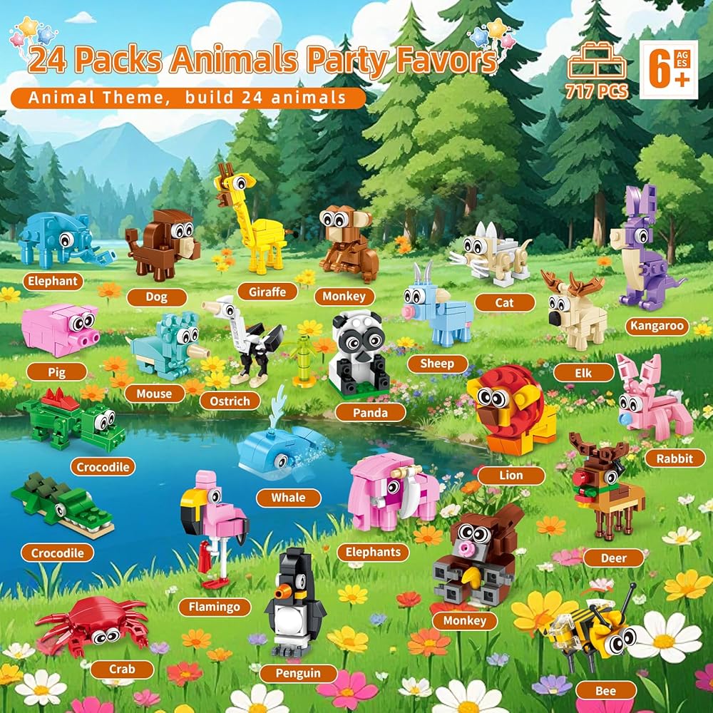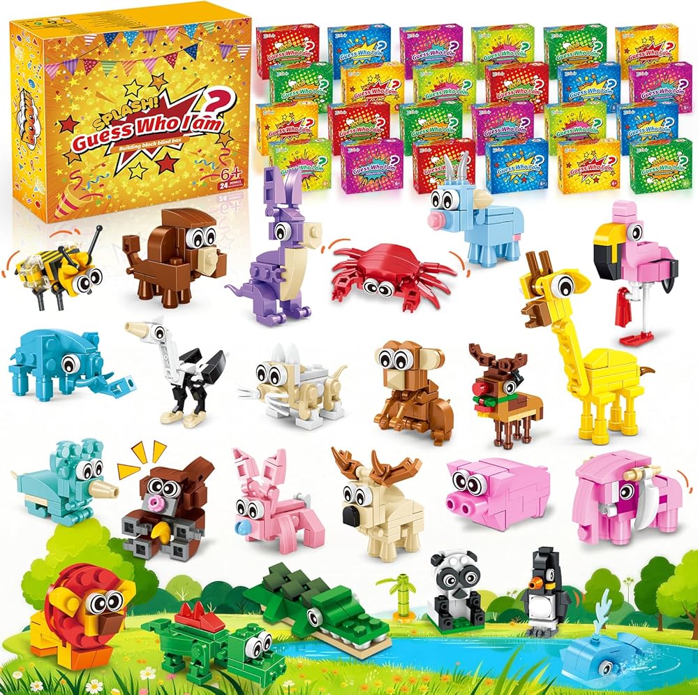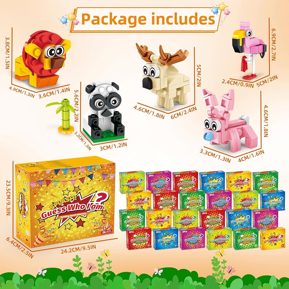 هدايا الحفلات للأطفال - 24 عبوة من 72 لعبة مكعبات بناء على شكل حيوانات من أجل حشو أكياس الهدايا وجوائز الفصل الدراسي لعيد الفصح، مجموعة بناء صغيرة، هدايا حفلات أعياد الميلاد للأولاد والبنات من سن 6 إلى 12 عامًا
