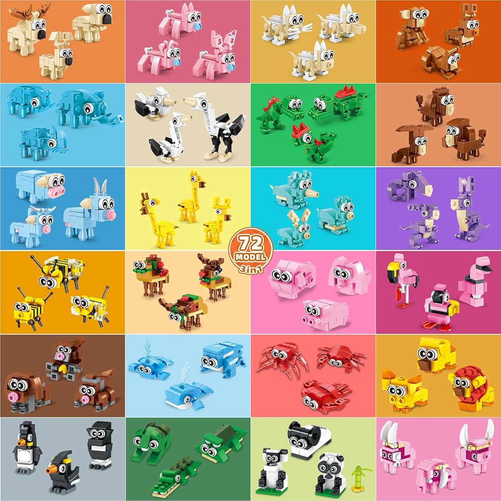【 3 في 1 و72 مجموعة بناء نماذج】--- كل مكعب بناء على شكل حيوان يحتوي على 3 نماذج، إجمالي 72 نموذجًا. مجموعة مكعبات البناء الصغيرة مناسبة لتقديمها كهدية لحفلات أعياد الميلاد. تأتي كل عبوة من مكعبات البناء مع دليل تعليمات منفصل، هدية مثالية للحفلات للأطفال من سن 6 إلى 12 عامًا. يمكن أيضًا استخدام مجموعة 3 في 1 كجائزة لفصول الأطفال الدراسية، وحشو حقائب الهدايا وجوائز الكرنفال، وألعاب مجموعة عيد الميلاد الصغيرة للأولاد والبنات من سن 6 سنوات فما فوق.