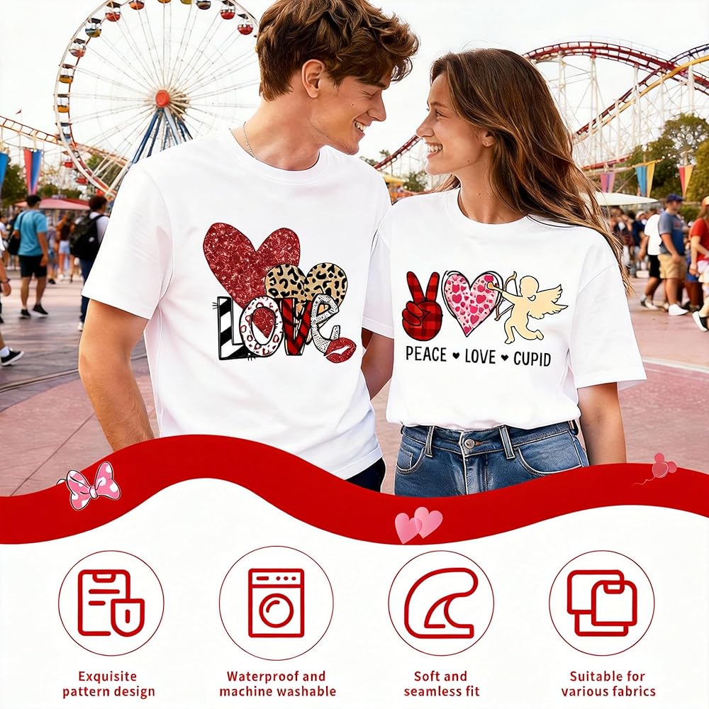 • ⚡【Instant Press-and-Use for Effortless Personalized Gifts】Featuring “Ready-to-Press” DTF technology, no complicated prep is needed. With just a household iron and a few simple steps, permanently imprint this vintage romance onto T-shirts, canvas bags, or hats. The perfect DIY solution for crafting surprise Valentine's gifts or exclusive couple keepsakes.