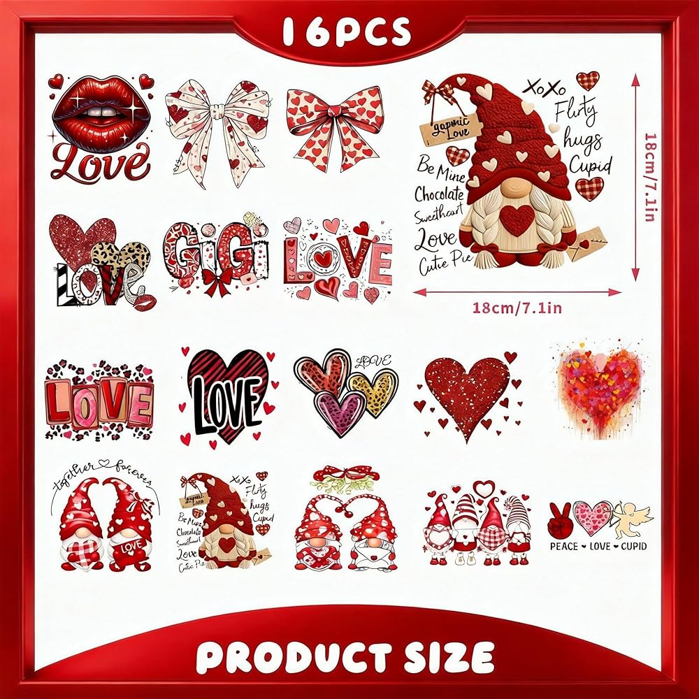 عيد الحب على النقل بالكي، 16 ورقة كيوبيد وحبيبته اقتباسات الحب DTF جاهزة للضغط، فينيل ناقل للحرارة من الفينيل للقمصان، هدايا لصديقتها وصديقتها