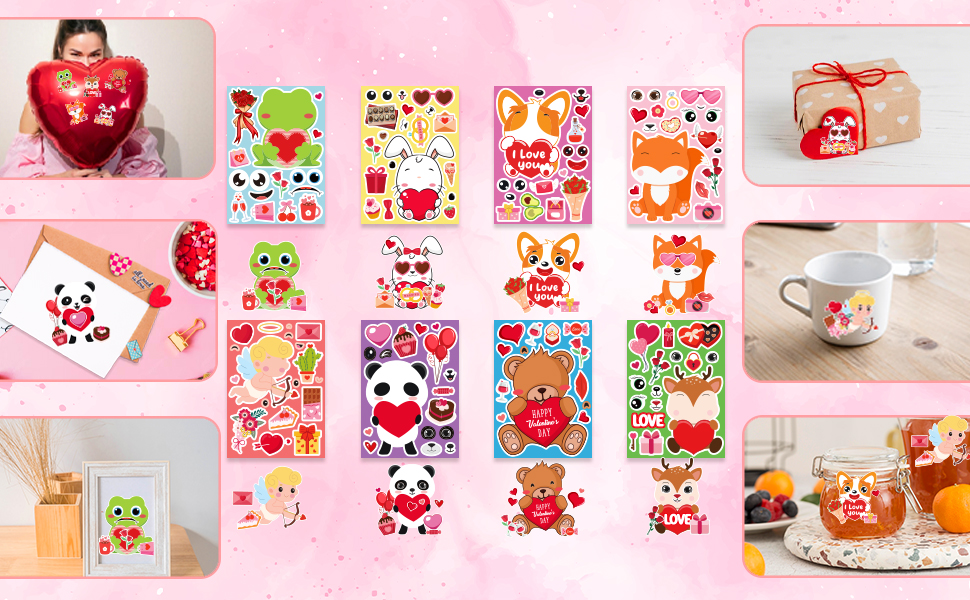 🎨 8 تصميمات حيوانات رائعة و24 ورقة: سوف تحصل على 24 ورقة ملصقات لعيد الحب مع 8 تصميمات حيوانات ساحرة (3 أوراق لكل منها)! تتميز بالضفادع اللطيفة والدببة والباندا والملائكة والكلاب والثعالب والغزلان والأرنب. ملصقات وجه مثالية للمزج والمطابقة لمتعة إبداعية لا نهاية لها.