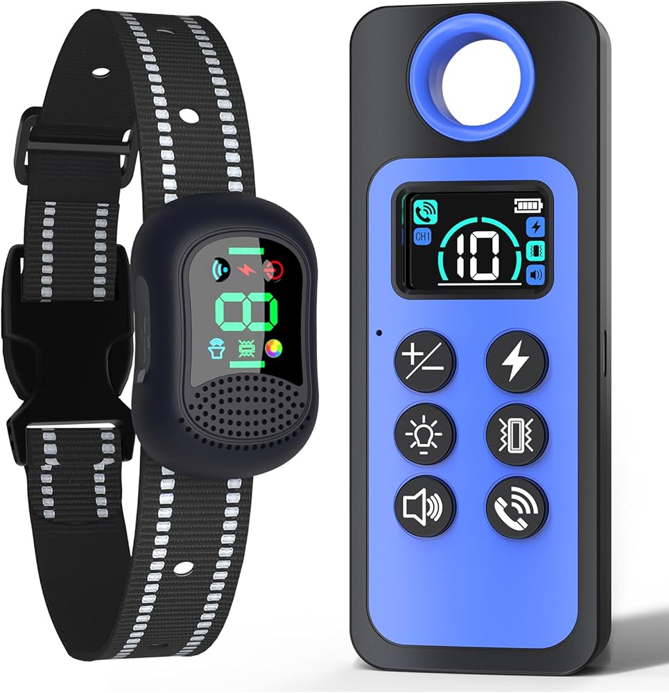 طوق تدريب الكلاب مع جهاز تحكم عن بعد - طوق إلكتروني بطول 4500 قدم مزود بصوت وصفير واهتزاز وصدمات ومصباح يدوي، طوق صدمات للكلاب قابل لإعادة الشحن مقاوم للماء للكلاب الصغيرة والمتوسطة والكبيرة