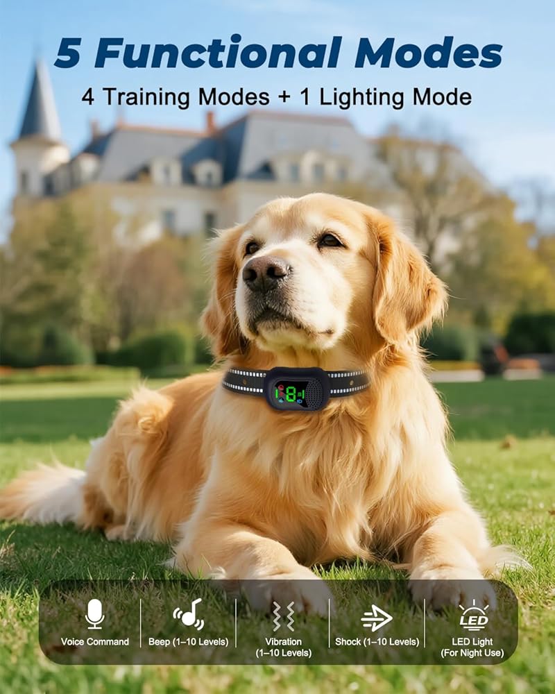 • 5 أوضاع تدريب مع تخصيص كامل - مزود بالصوت، والصفير، والاهتزاز، والصدمات الثابتة الآمنة، ومصباح يدوي، يوفر طوق تدريب الكلاب هذا مع جهاز التحكم عن بعد 10 مستويات شدة قابلة للتعديل لأوضاع الصفير والاهتزاز والصدمات، مما يمنحك التحكم الكامل في تجربة التدريب. سواء كنت تعزز الأوامر أو تثبط السلوك السيئ، يمكن تصميم هذا الطوق الإلكتروني لتدريب الكلاب ليناسب شخصية كلبك واحتياجاته الفريدة.