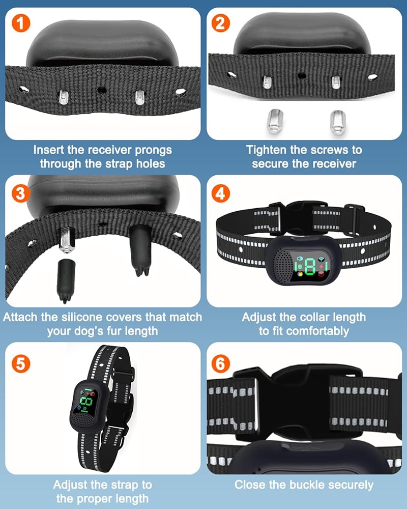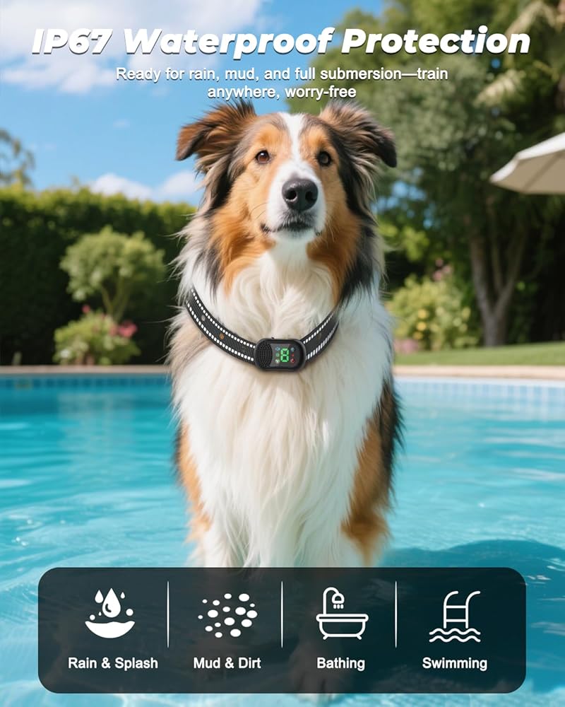 • جهاز استقبال مقاوم للماء IP67 مع ضوء LED - مصمم لجميع البيئات، يضمن طوق الصدمات المضاد للماء IP67 للكلاب التشغيل الآمن خلال الأيام الممطرة أو رذاذ البرك أو جلسات السباحة. مصباح التنفس LED الملون المدمج يجعل من السهل تحديد موقع كلبك في الليل أو في ظروف الإضاءة المنخفضة، وهو مثالي للاستخدام مع طوق الصدمات عن بعد للكلاب في الأماكن الخارجية.