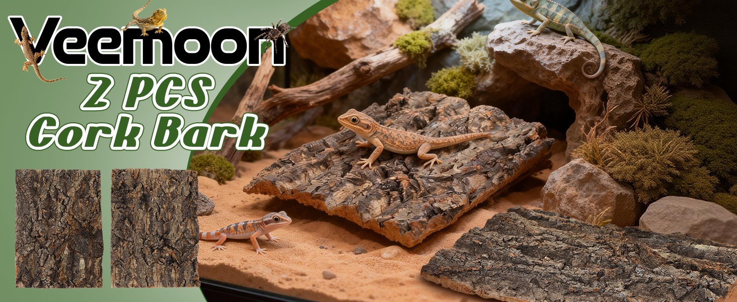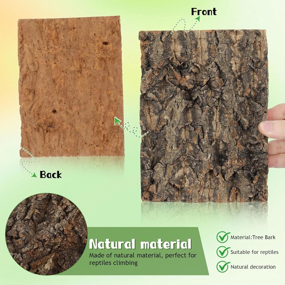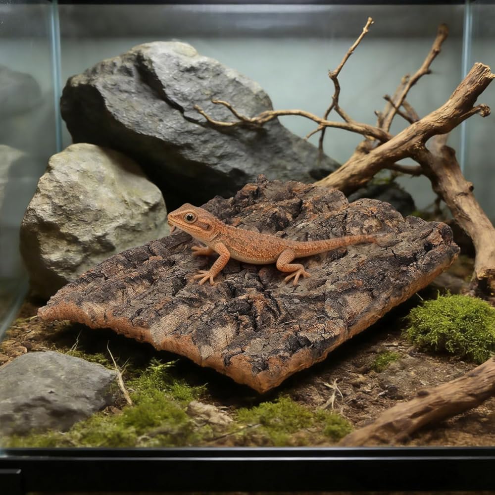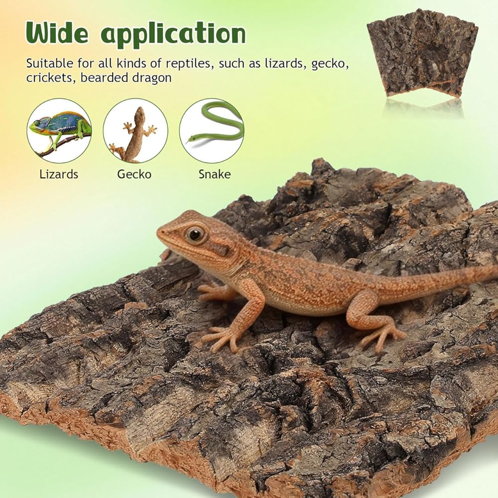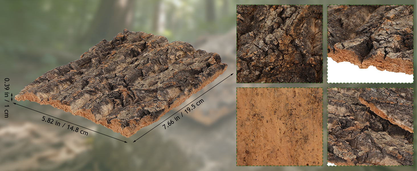 قطعتان من لحاء الفلين للزواحف، لحاء شجرة تررم من الفلين الطبيعي لتسلق حصيرة ديكور المسكن للسحالي والسلحفاة والعناكب وإكسسوارات خزان الأفعى - 7.66 × 5.82 بوصة