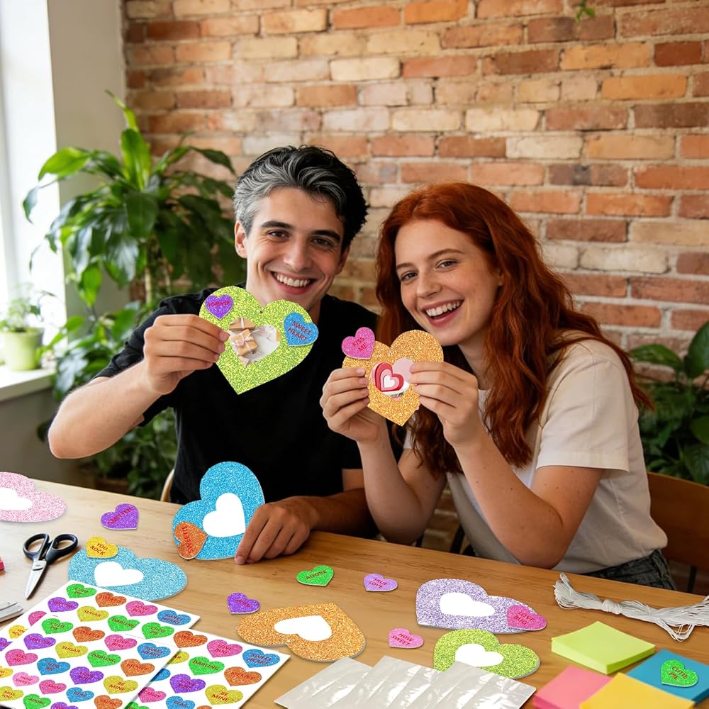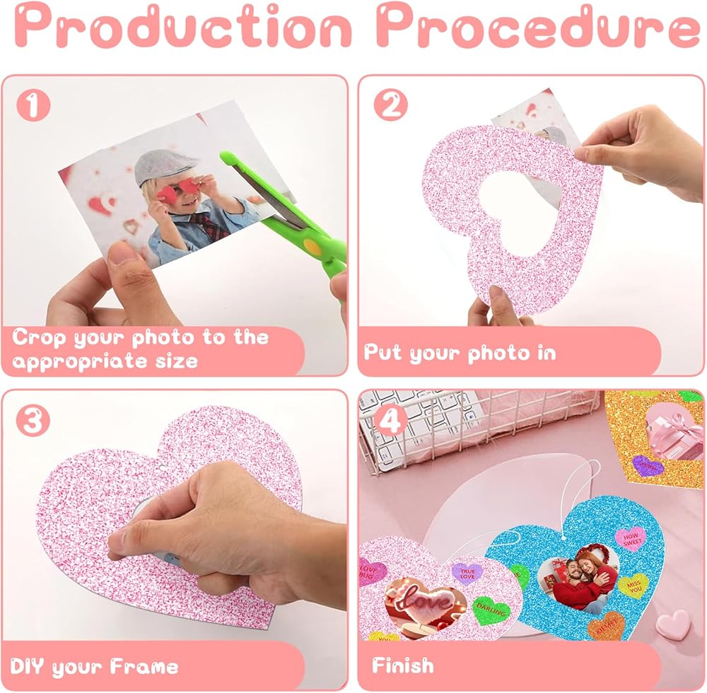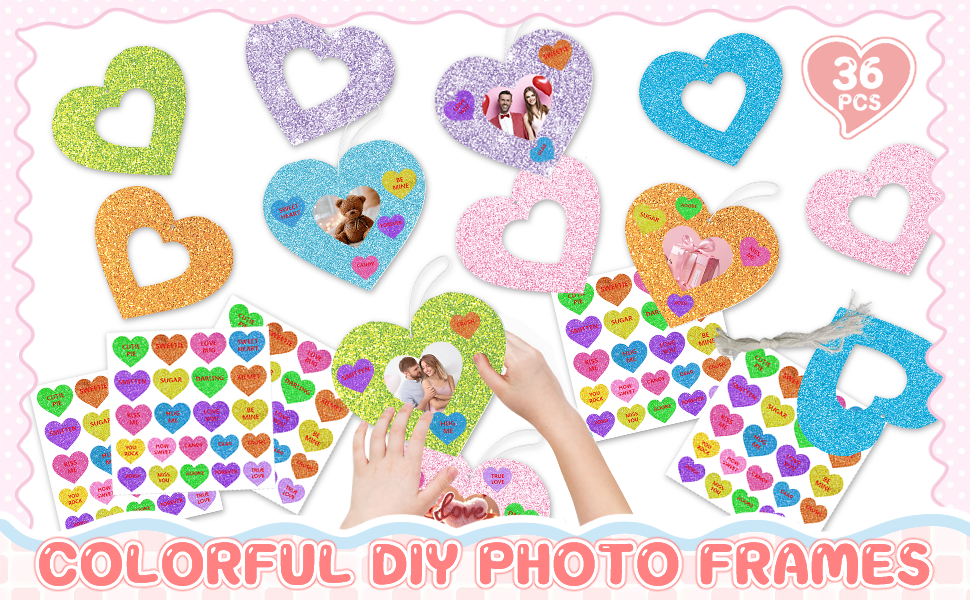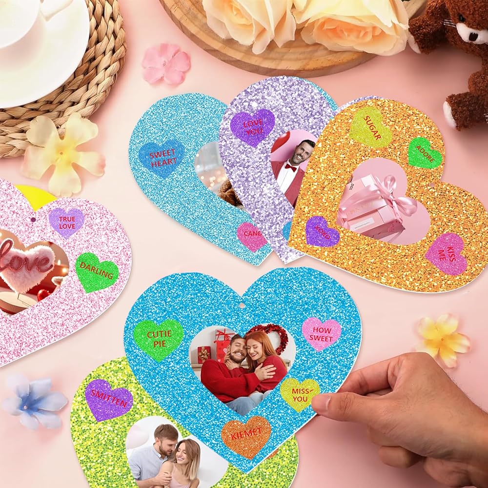 36 مجموعة من الأعمال اليدوية على شكل قلب لعيد الحب، وإطارات صور وملصقات لعيد الحب، مجموعة أدوات إطار صور على شكل قلب لعيد الحب DIY للأنشطة الفنية للحفلات المنزلية