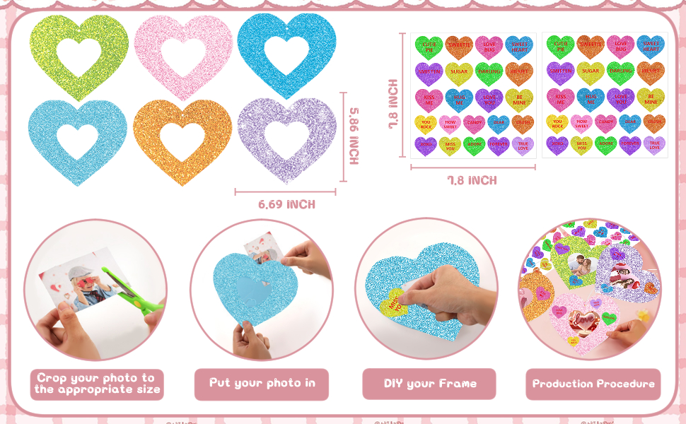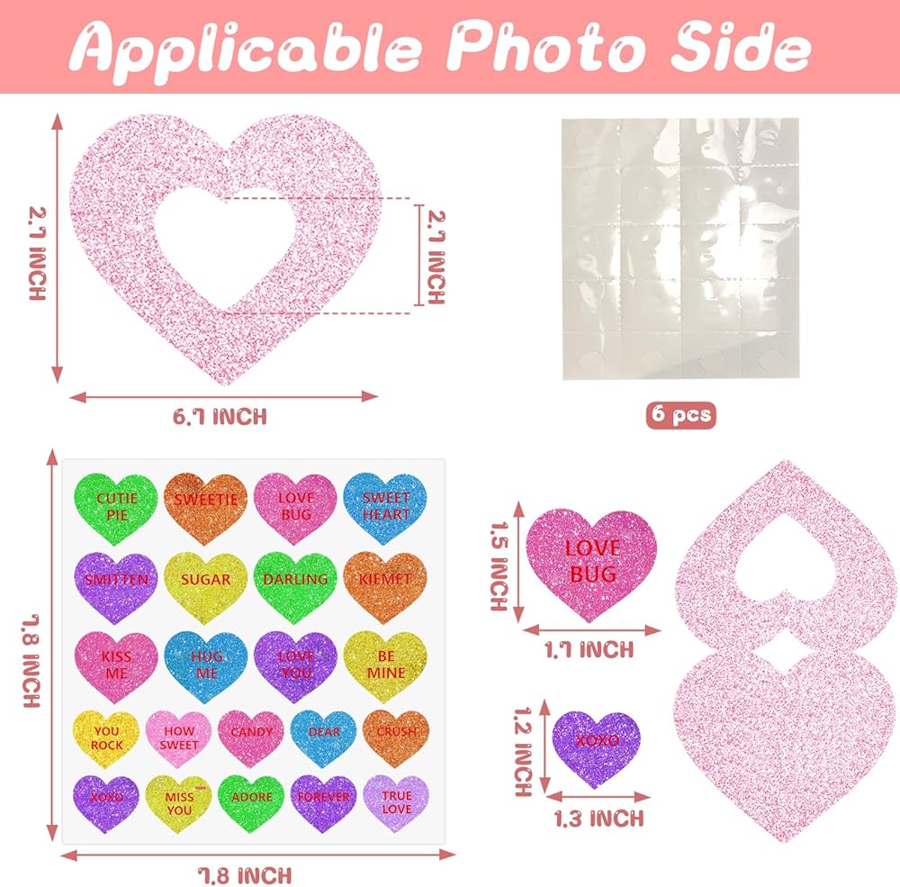 المادة والحجم: إطار الصورة على شكل قلب يبلغ مقاسه حوالي 5.8 × 6.7 بوصة/15 × 17 سم؛ مصنوعة من بطاقات وملصقات عالية الجودة، يمكنك استخدامها بثقة ولن تنكسر بسهولة.