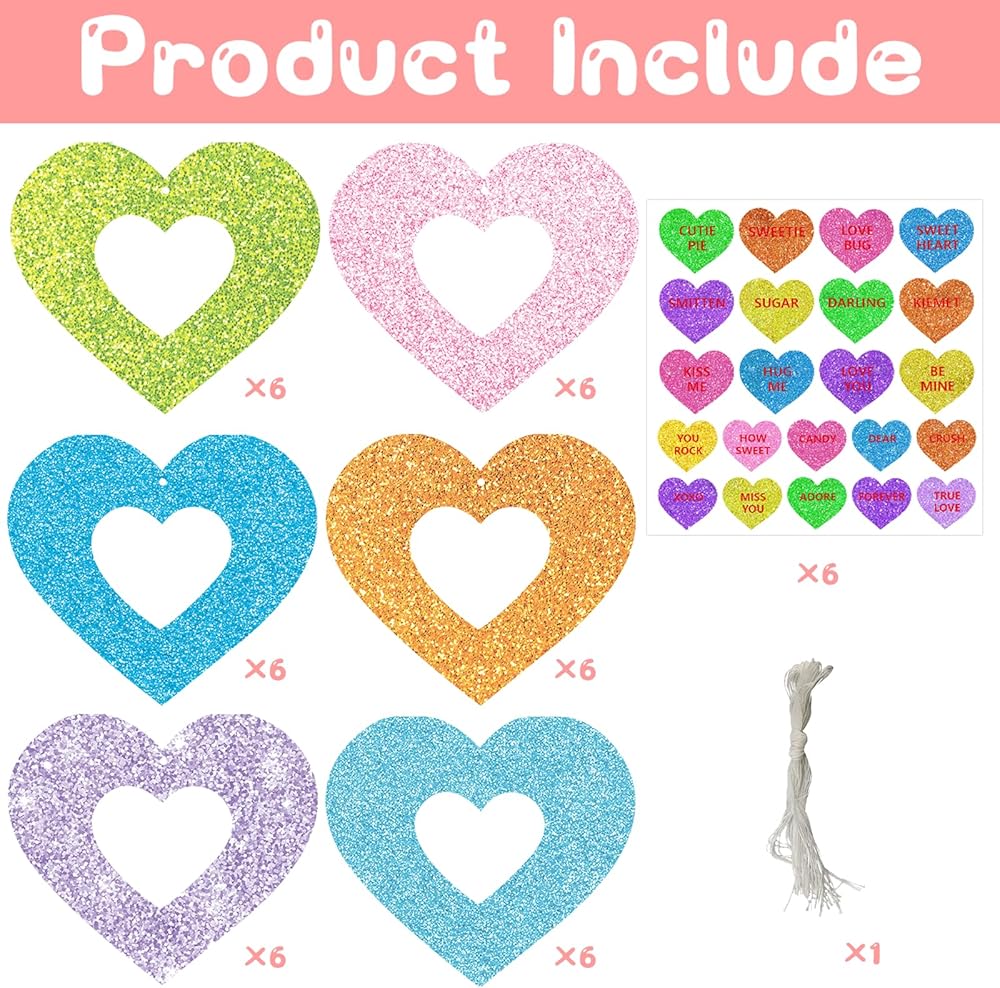 قائمة العبوة: ستحصل على 36 إطار صور على شكل قلب و36 حبلًا، بالإضافة إلى 150 ملصقًا لامعًا على شكل قلب بألوان متعددة، مثل الأخضر والأزرق والوردي، بما يكفي لوضع صور عائلتك الثمينة في ديكور إطار صور العطلات الجميل هذا، مما يجعل عطلتك أكثر جوًا
