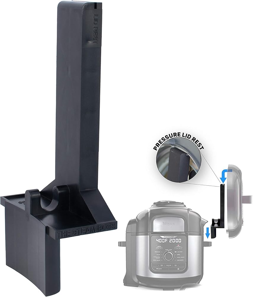 • سهل الاستخدام: للتركيب، ما عليك سوى تمرير جهاز Steam Boss - مسند الغطاء في المقبض الجانبي الأيمن. ثم ضع غطاء ضغط Foodi الخاص بك في الفتحة المخصصة للتخزين. أيضًا، ضع ملعقة الخلط أو التقديم بسرعة في مسند الملعقة، وحافظ على نظافة الطاولة وأدوات الطعام منظمة.