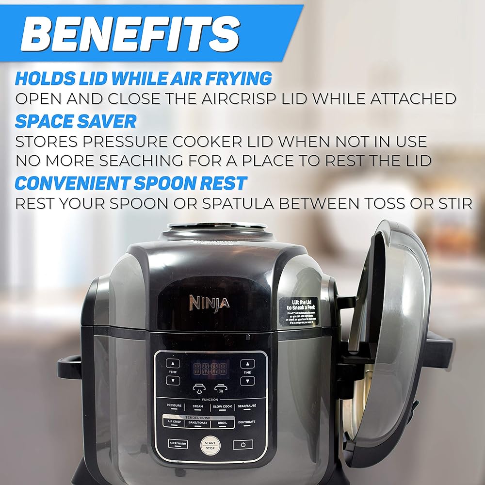 • يوفر الوقت: توقف عن البحث عن مكان للتخزين أو للعثور على غطاء طنجرة الضغط Ninja Foodi أثناء القلي بالهواء. ضع الغطاء في الباقي واستفد منه بالكامل لفتح وإغلاق غطاء Aircrisp. يتم تخزين غطاء الكمبيوتر بأمان على جانب طباخ Foodi الخاص بك.