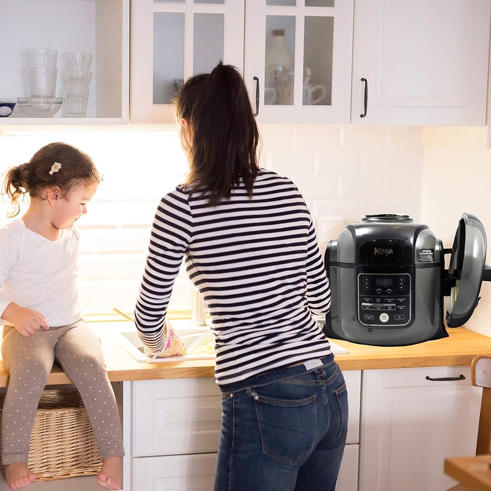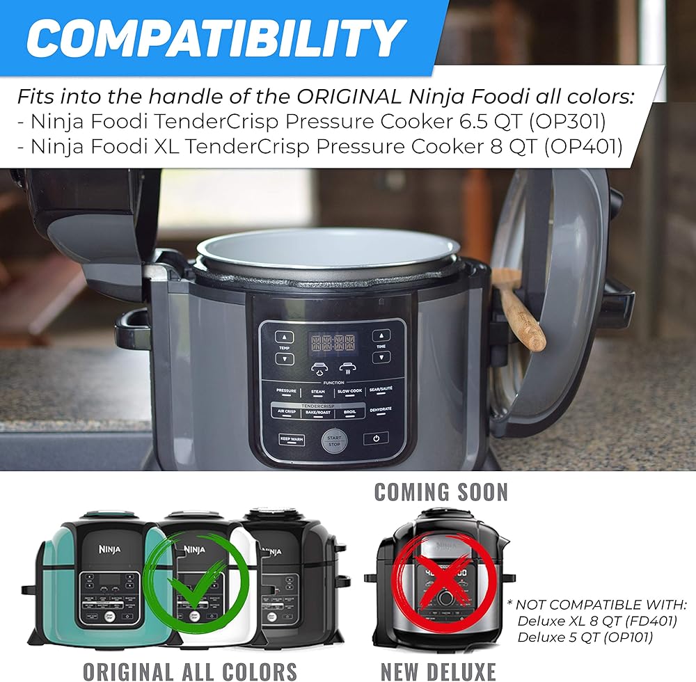 • توفير المساحة: قم بتنظيم مطبخك ووفر مساحة الطاولة من خلال تخزين غطاء طنجرة الضغط مباشرة على جانب Ninja Foodi الخاص بك