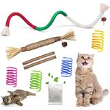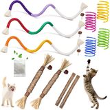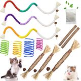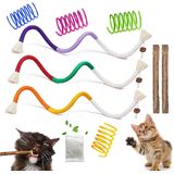 • 💜قيمة جيدة لألعاب المضغ للقطط: 3 قطع حبل مضغ للقطط لتنظيف الأسنان + 2 قطعة من أعواد المضغ + 4 قطع لعبة زنبركية للقطط + 1 قطعة من النعناع البري، إجمالي 10 قطع في العبوة، كمية مفاجئة كبيرة لتلبية احتياجات القط للعب. توفير ترفيه وإثراء لا نهاية له لقططك الداخلية، مما يجعل قطتك أكثر نشاطًا ومرحة. اختيار هدية رائع لقططك وقططك.