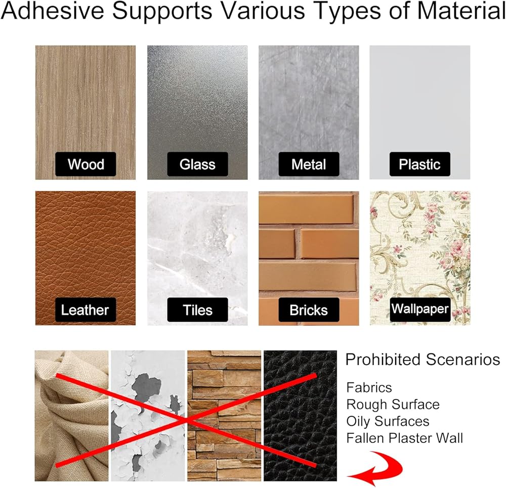 أسطح منحنية متوافقة وطول قابل للتعديل - يتميز غلاف الأسلاك الخاص بنا بتصميم جديد للالتصاق بالأسطح الأفقية والقابلة للانحناء، بالإضافة إلى أنه مناسب لسطح الزجاج والسيراميك واللوح الخشبي والبلاستيك والمعادن والبلاط وورق الحائط والجلد. 3 قطع من حزم أسلاك الأجهزة قابلة للتعديل لتناسب طول الكابل، فلا تقلق بشأن سمك السلك وطوله.