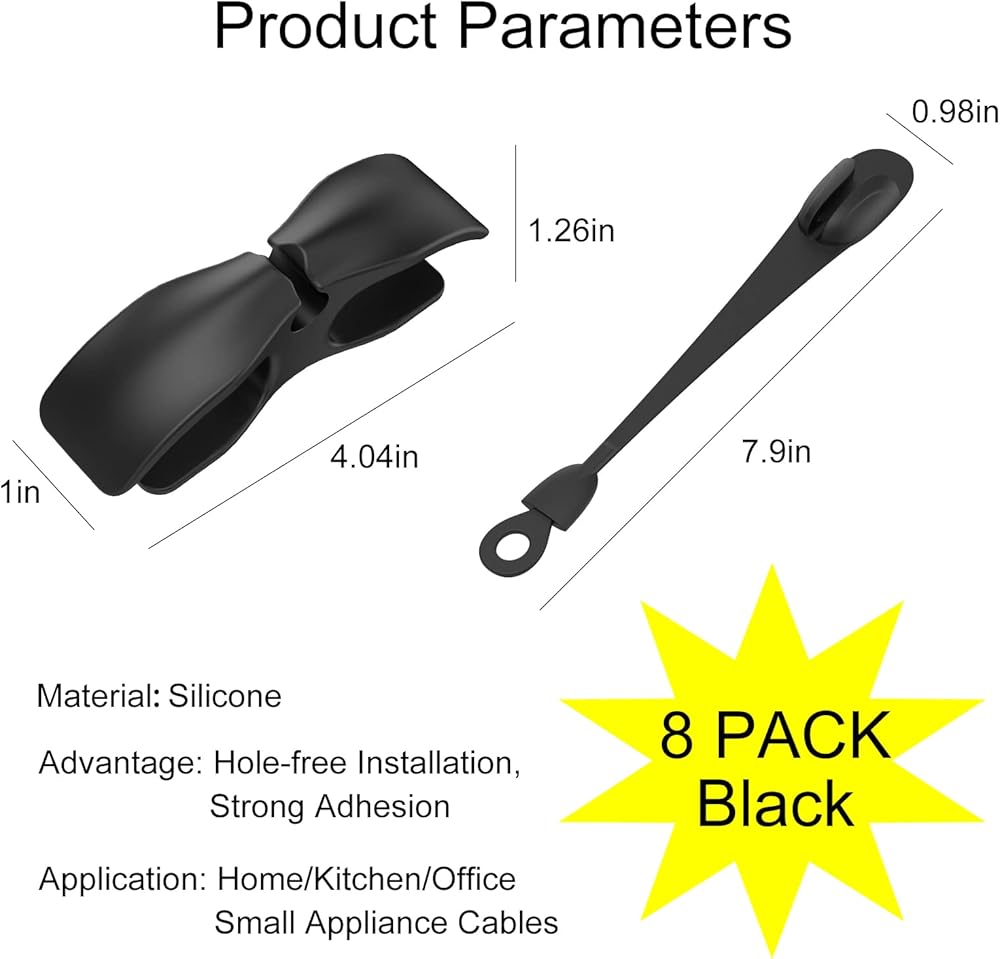 حافظ على منزلك ومطبخك مرتبًا - يمكن استخدام 8 قطع من منظم الأسلاك للأجهزة كمساعد في المطبخ، وتلبي احتياجاتك اليومية للاستخدام والاستبدال، مما يساعدك على لف وتنظيم الأسلاك. قل وداعًا لأسلاك الأجهزة الفوضوية التي تجعل الطاولة فوضوية وتحمي سلامة منزلك. حافظ على نظافة منزلك ووفر مساحة أكبر. أدوات منزلية رائعة لأي شخص يحتاج إلى الطهي في المطبخ بشكل متكرر.