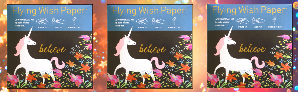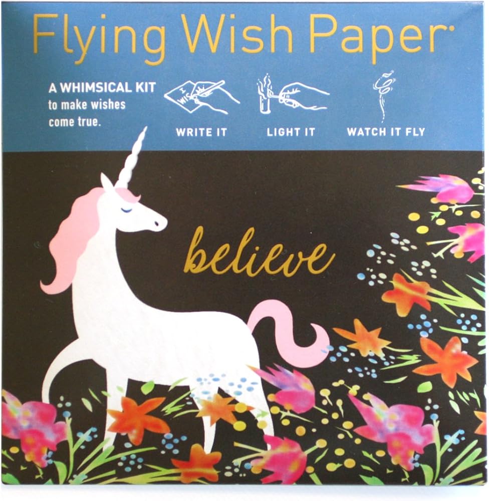 ورق الأمنيات الطائرة - اكتبها وأضيئها وشاهدها تطير - يونيكورن - 5 × 5 بوصة - مجموعات صغيرة