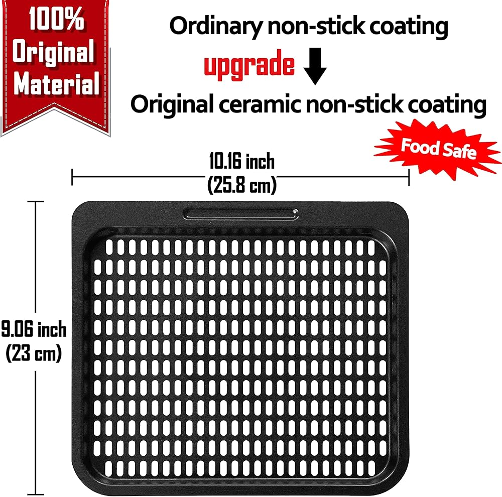 - الحجم الداخلي للمقلاة الهوائية الأخرى يمكن أن يناسب صينية الطبخ مقاس 10 انش عرض × 9 انش عمق.