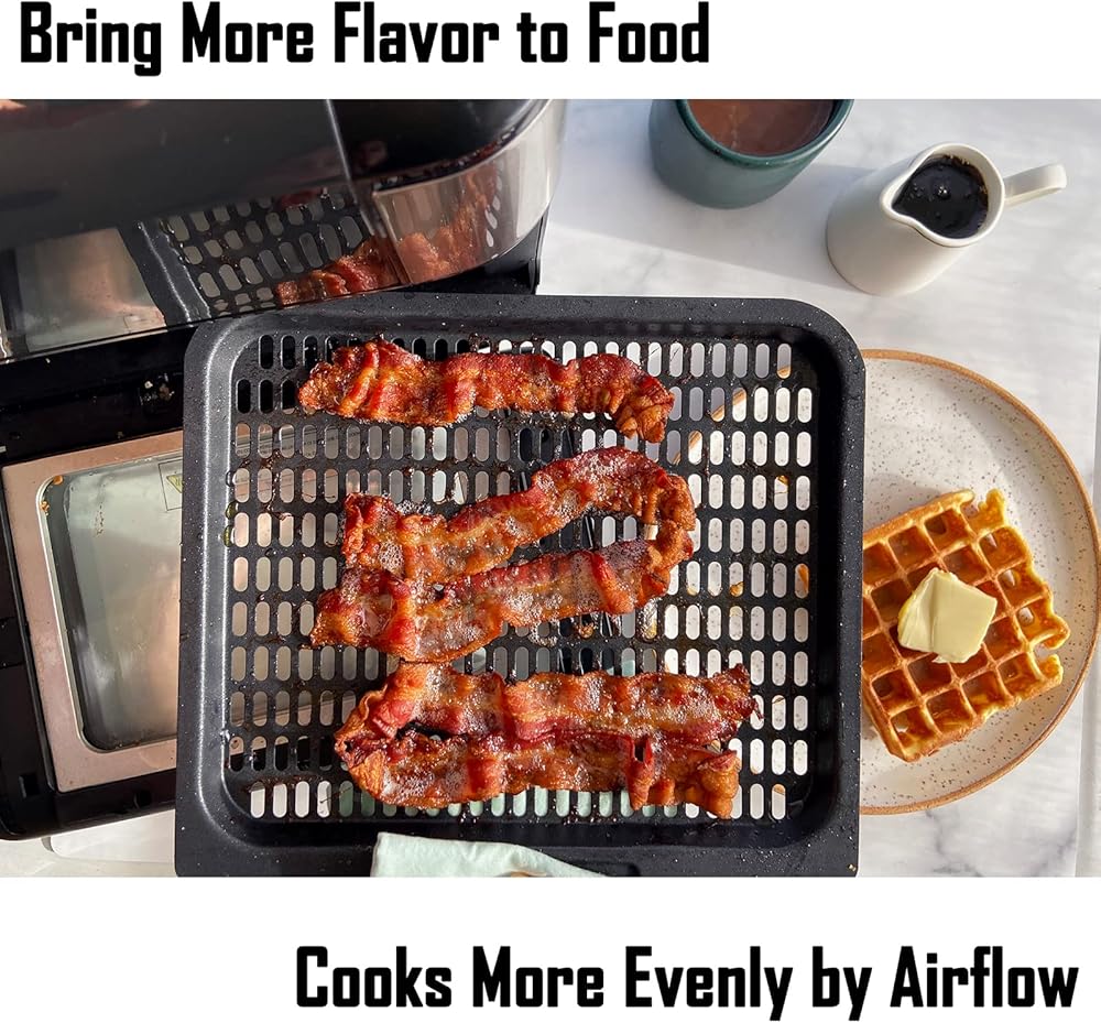 رفوف الطبخ بتدفق الهواء: تصميم شبكي يسمح لدوامة الهواء الساخن بلمس الطعام بشكل شامل، مما يجعل الطعام مجفف ومقرمش.