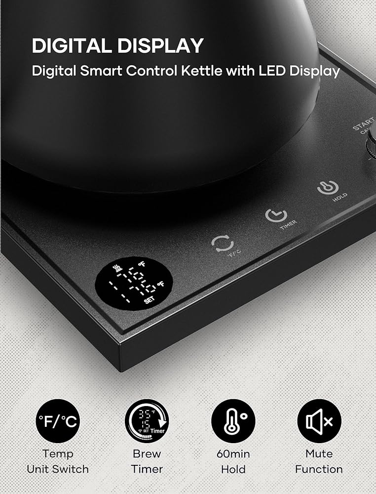 ضبط درجة الحرارة بدقة ±1℉ - ارفع مستوى لعبة التخمير الخاصة بك مع القدرة على ضبط درجة الحرارة بدقة مذهلة تبلغ ±1℉. أطلق العنان لمجموعة كاملة من نكهات القهوة والشاي من خلال تجربة درجات حرارة مختلفة.