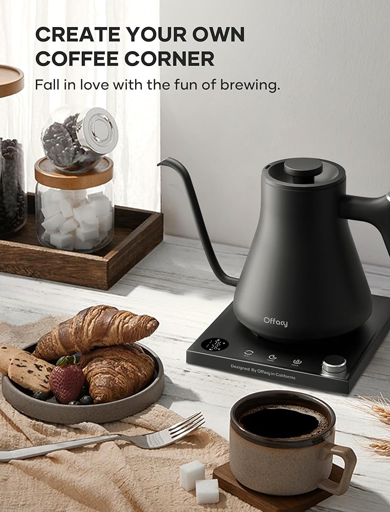 غلاية كهربائية معقوفة للصب فوق القهوة - أصبح تحقيق معدل التدفق المثالي أسهل من أي وقت مضى. تتميز غلايتنا بتصميم فوهة معقوفة مقاس 0.68 سم مصنوعة بدقة تضمن تدفق الماء الأمثل، حتى للمبتدئين.