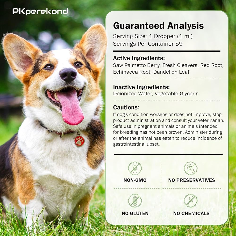 Every drop is free from artificial additives, preservatives, or fillers—because your dog deserves only the best. This formula works with your dog's body to help ease discomfort from an enlarged prostate, maintain healthy bladder function, and support vitality from the inside out.