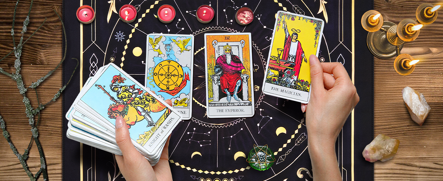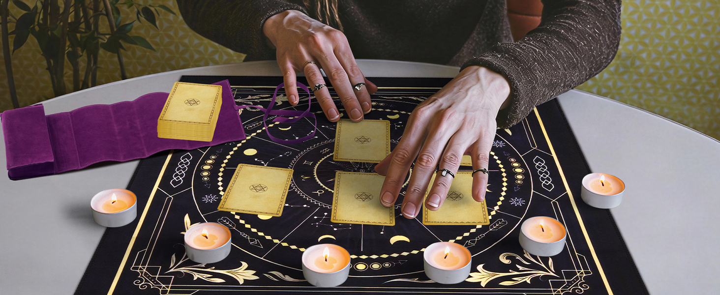 التركيز الروحي: يخلق مفرش طاولة التارو مساحة مقدسة مثالية للتأمل، وأعمال الطقوس، وقراءة الحظ، والممارسات الروحية.