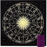 عمل فني مفصل: حصيرة التارو موضحة بشكل جميل برموز البروج التقليدية بما في ذلك برج الحمل، والثور، والجوزاء، والسرطان، والأسد، والعذراء، والميزان، والعقرب، والقوس، والجدي، والدلو، والحوت.