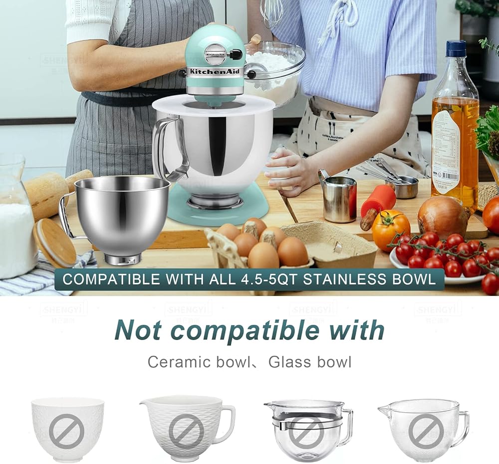 It helps to prevent ingredients from messily splashing out of the bowl while the mixer is running at high speeds, keeping your kitchen clean and free of waste. With this cover, you can easily mix ingredients without worrying about spills or countertop messes.