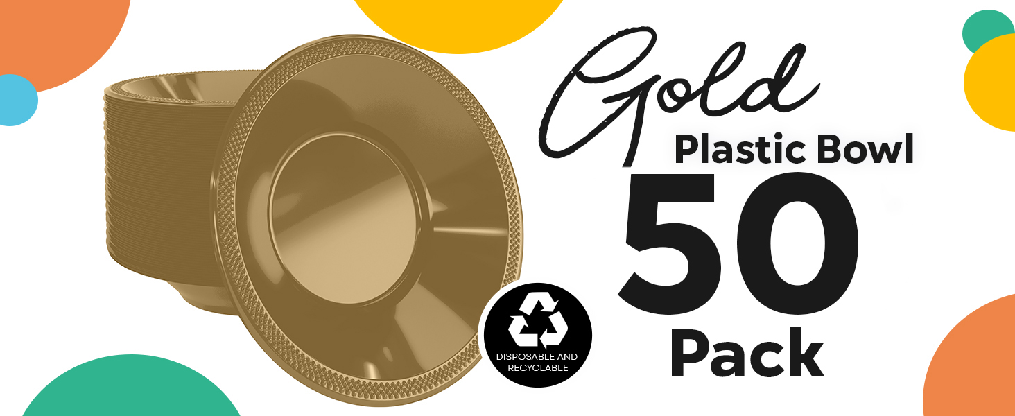 أساسيات الحفلات: هذه الأوعية البلاستيكية الذهبية التي تستخدم لمرة واحدة للحفلات ضرورية للوازم المنزلية الورقية والبلاستيكية. تم تصميم هذه الأوعية المخصصة للحفلات التي تستخدم لمرة واحدة لرفع مستوى تجربة تناول الطعام. استخدمها كأوعية حبوب للاستعمال مرة واحدة أو أوعية يمكن وضعها في الميكروويف، فهذه الأوعية شديدة التحمل للحساء الساخن التي تستخدم لمرة واحدة ستلبي بالتأكيد احتياجات حفلتك.