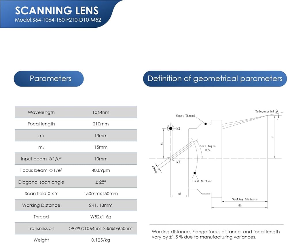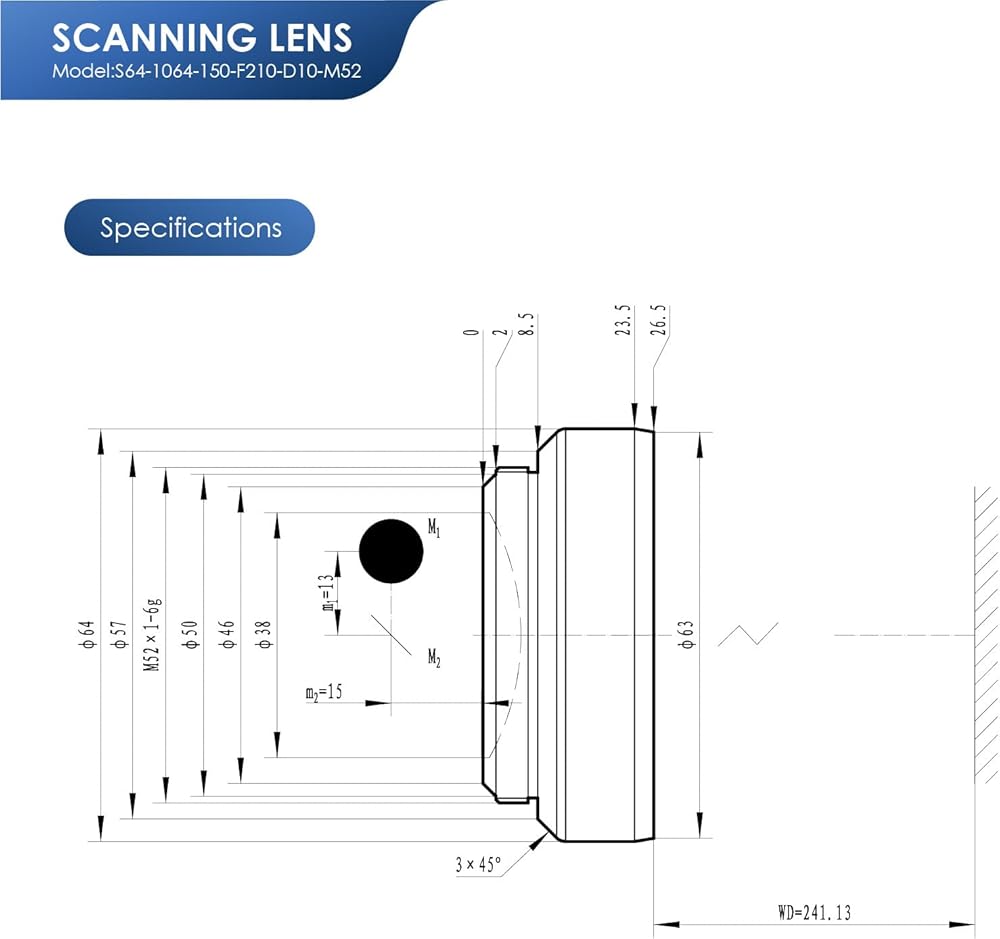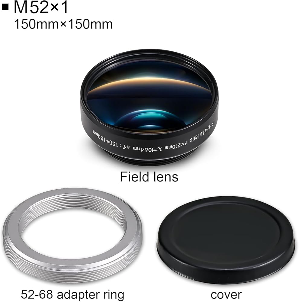 150x150mm FIELD LENS: This powerful F-theta lens from Monport is ideal for laser marking, engraving, image transfer, material processing, and cutting systems;It can move markings within a 5.9x5.9 inch work area, and can even perfectly complete any design you need.