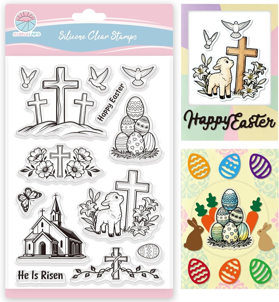 تتضمن العبوة: ورقة من طوابع عيد الفصح الشفافة تتميز بمجموعة متنوعة من الأجزاء، بما في ذلك الصلبان المختلفة، وبيض عيد الفصح، والحملان، وحمائم السلام، والكنائس، والفراشات، و"عيد الفصح السعيد"، مما يوفر خيارات متعددة لتناسب احتياجاتك