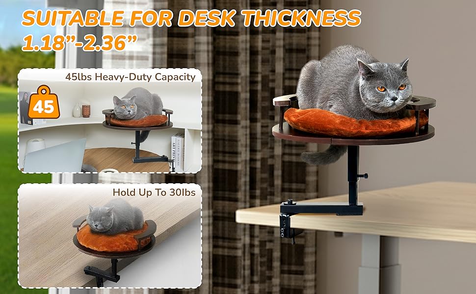 🐈 يحمل ما يصل إلى 45 رطلاً وحجمًا مثاليًا: مصنوع من معدن عالي الجودة، ويدعم مكتب سرير القطط هذا ما يصل إلى 45 رطلاً على مكتبك. بقطر 15.28 بوصة وارتفاع 2.34 بوصة، يوفر التصميم الدائري لسرير مكتب القطط هذا الحجم المثالي لجميع السلالات. يوفر هذا السرير المكتبي للقطط المغطى بقماش قطيفة ناعم ملاذًا مريحًا للقطط الصغيرة وكبار السن على حدٍ سواء
