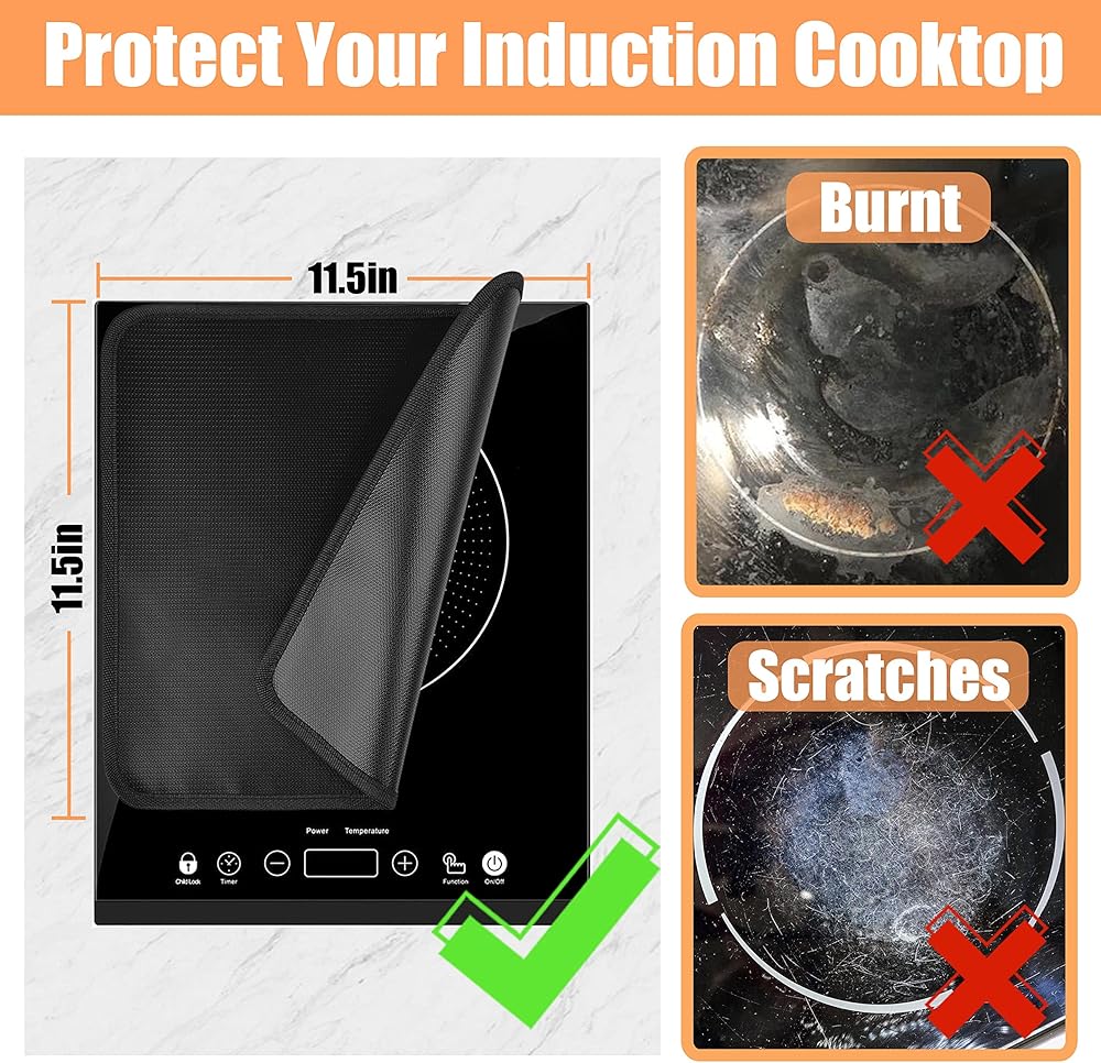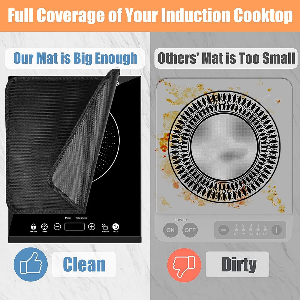 - تحمي الطباخ الحثي الخاص بك بالكامل: تحمي حصيرة الحماية الخاصة بنا الموقد الحثي بالكامل، وليس فقط منطقة التسخين.