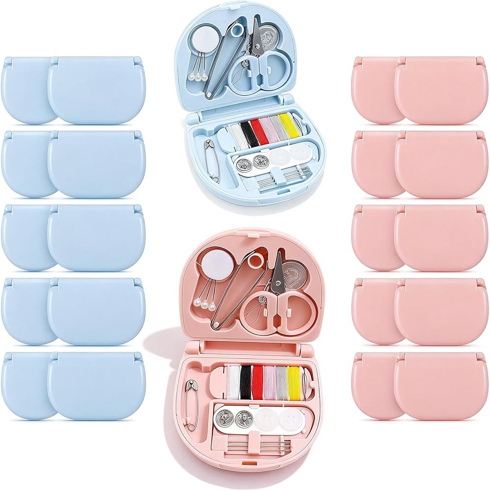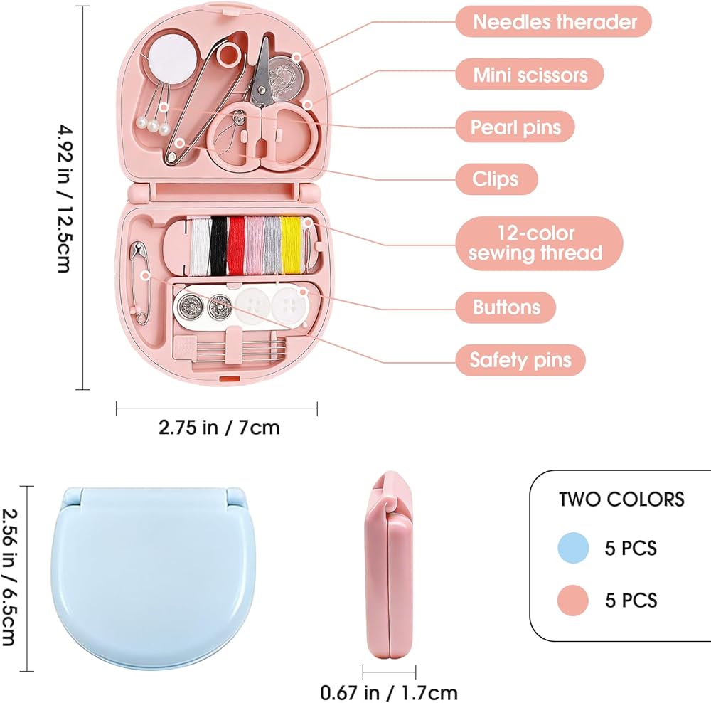 【10-Pack Bulk Quantity & Perfect Size】 This set includes 30 individual mini sewing kits (5 light blue, 5 pink), offering exceptional value. Each compact case measures just 2.7 x 2.6 x 0.7 inches, designed for effortless portability in pockets, purses, or travel bags without occupying significant space.