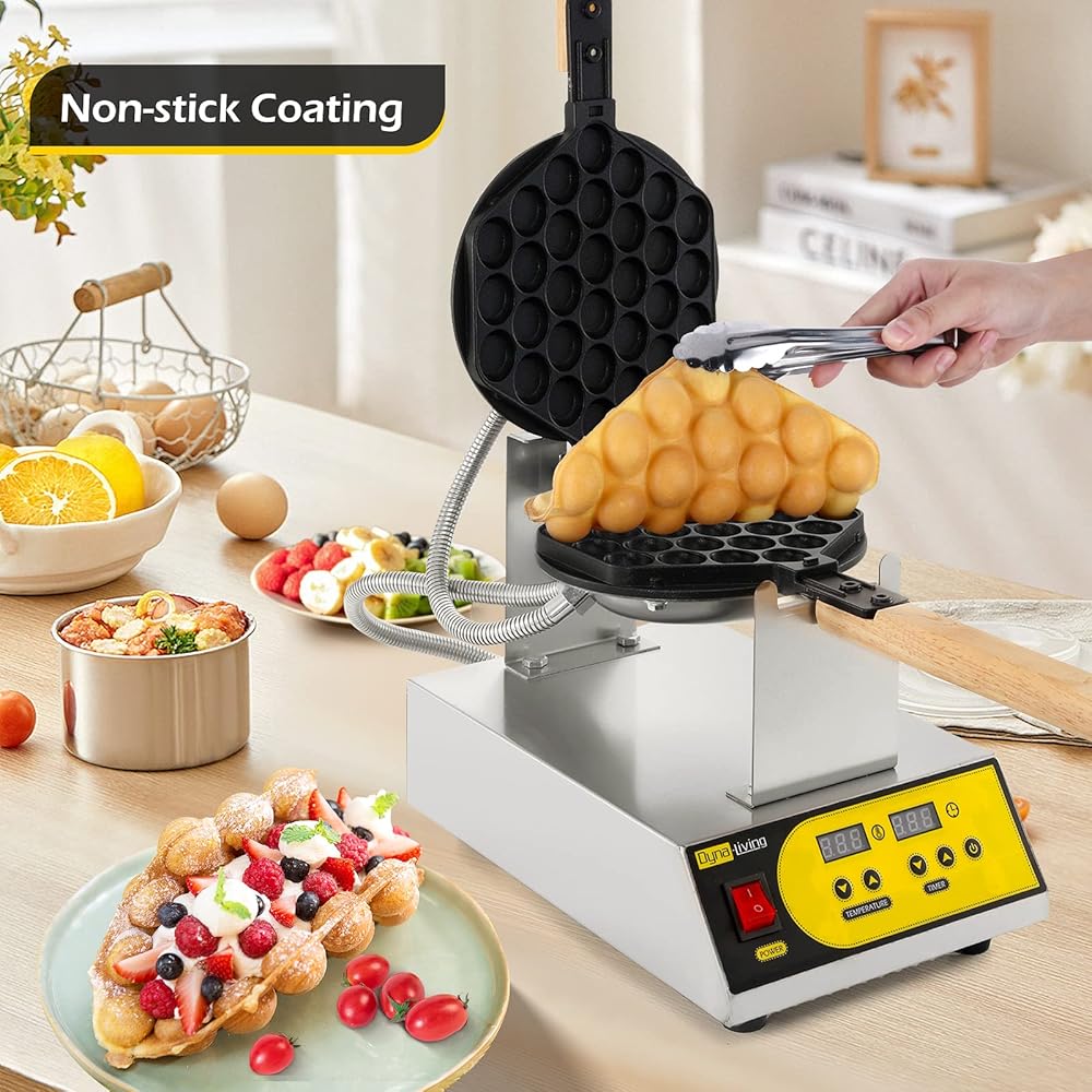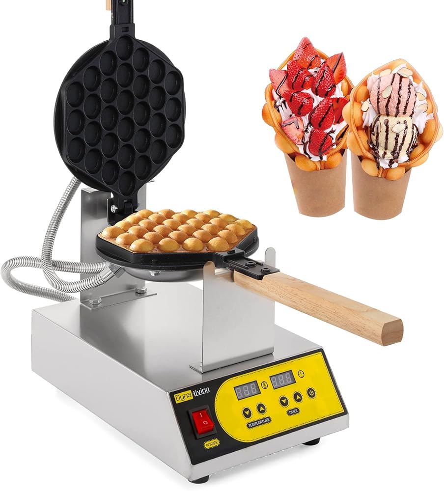 صانعة الوافل الفقاعية التجارية الذكية من هونج كونج، ماكينة صنع الوافل الفقاعية بقدرة 1400 وات مع طلاء غير لاصق، شاشة رقمية LED، 110 فولت من Dyna-Living